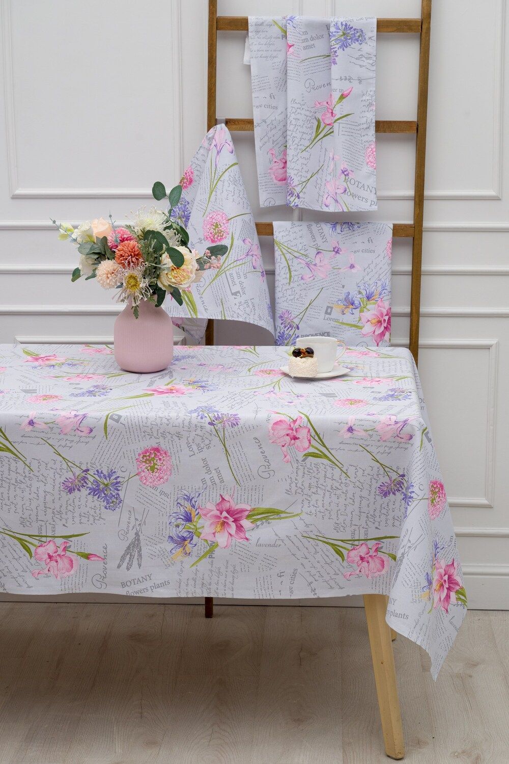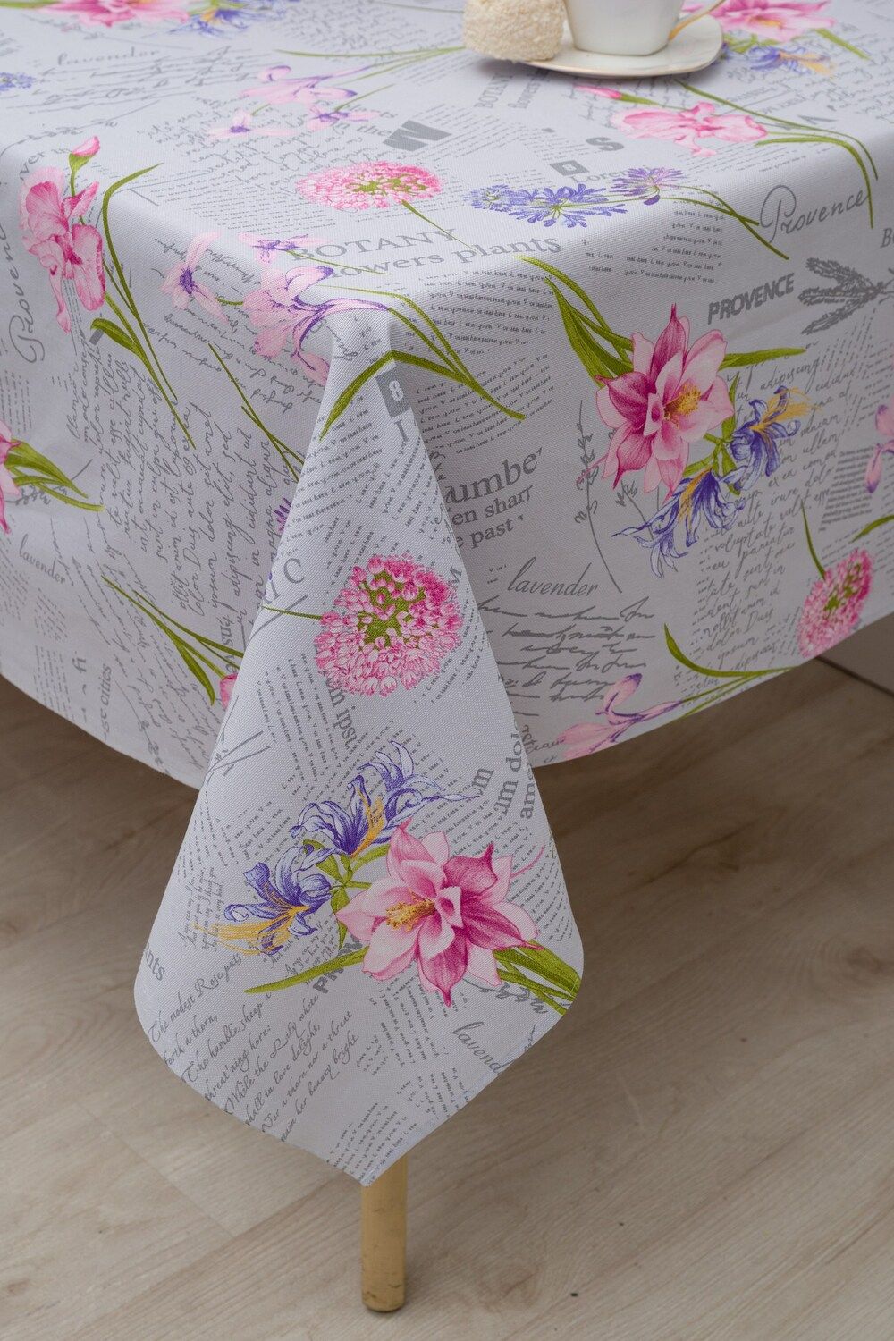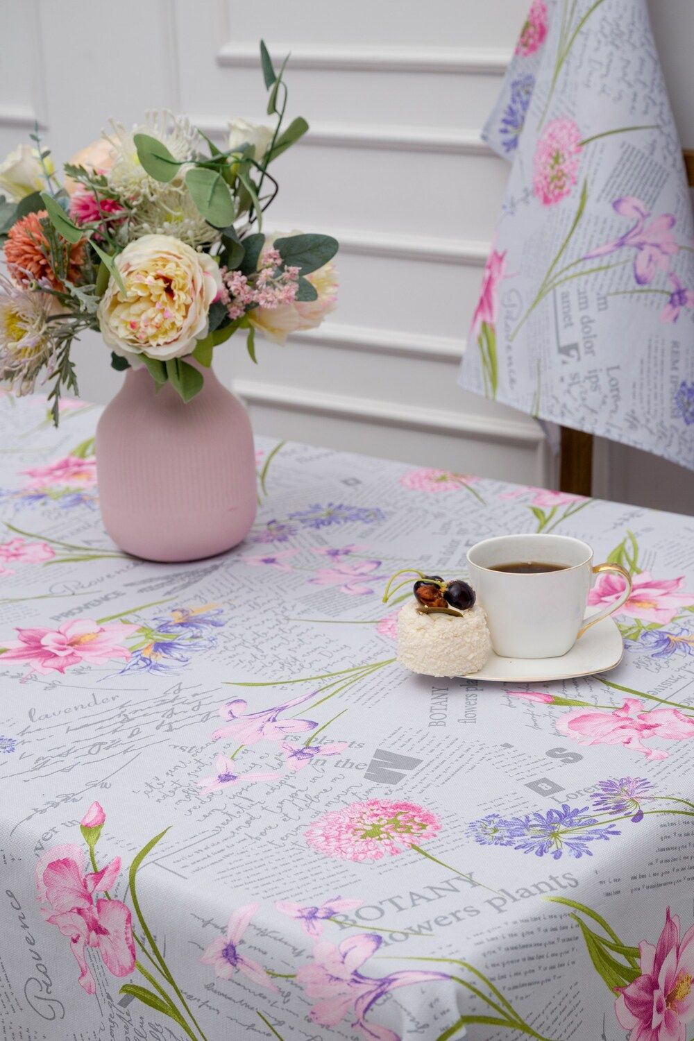 Скатерть "Цветы и письма" прекрасно впишется в любой интерьер, добавив нотку изысканности и шарма. Позвольте себе насладиться красотой и уютом в вашем доме с этой превосходной скатертью.
