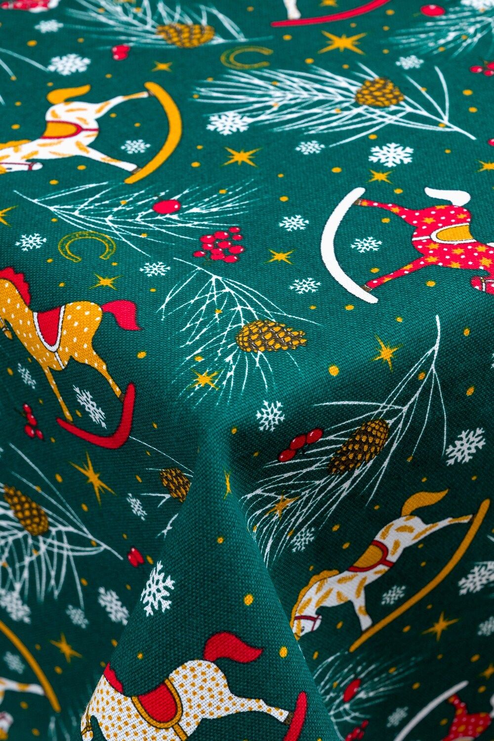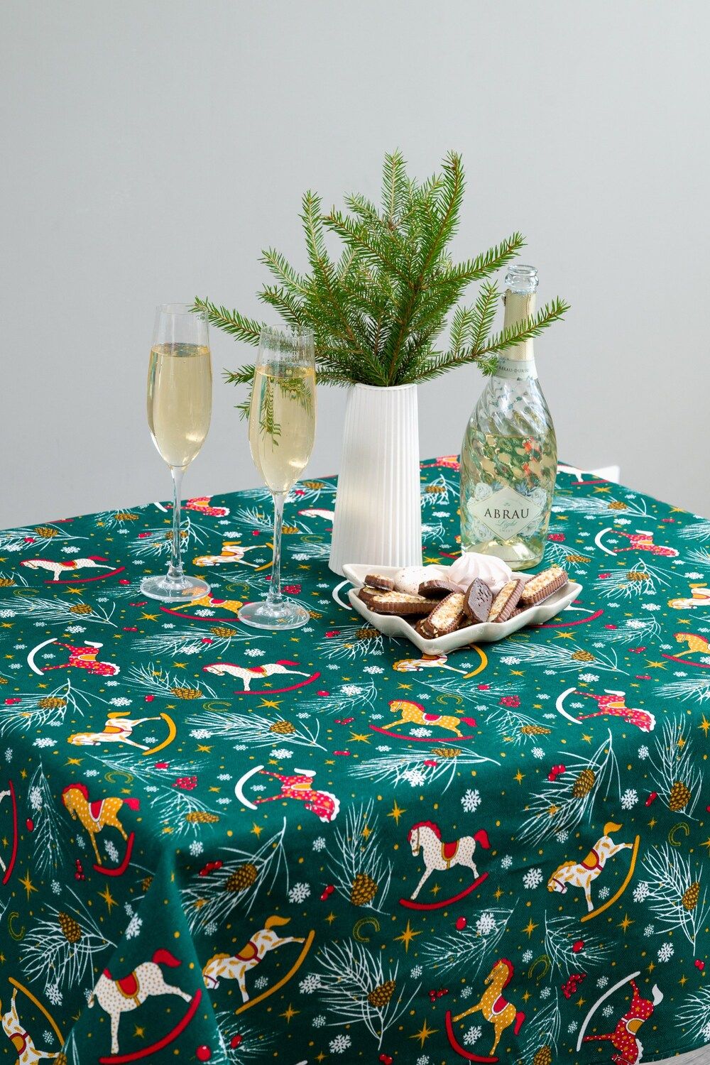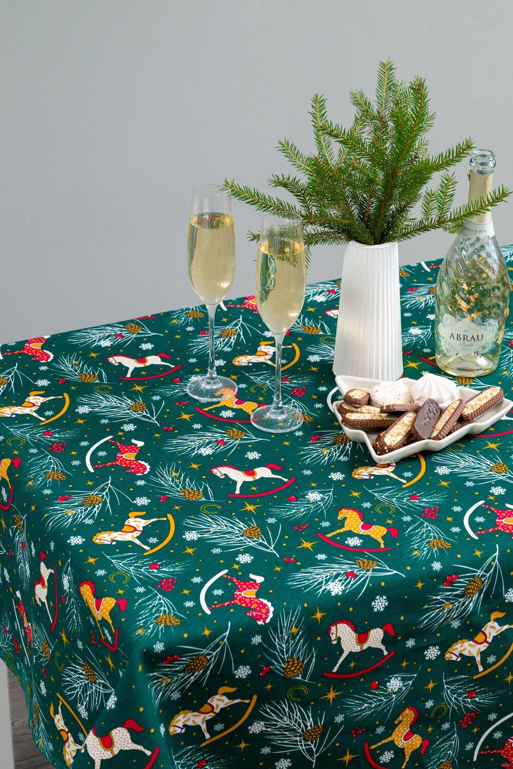 Новогодня скатерть с символом 2026 года "Лошадки" добавит капельку волшебства в ваш дом. Яркая зеленая скатерть с лошадками и зимними узорами станет отличным дополнением к интерьеру вашей кухни. Скатерть представлена в трех размерах, что позволяет выбрать идеально подходящий к вашему столу. Выполненная из 100% хлопковой рогожки скатерть "Лошадки" прекрасно держит яркость красок и первоначальный внешний вид долгие годы.