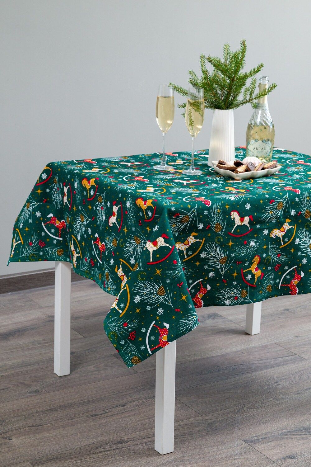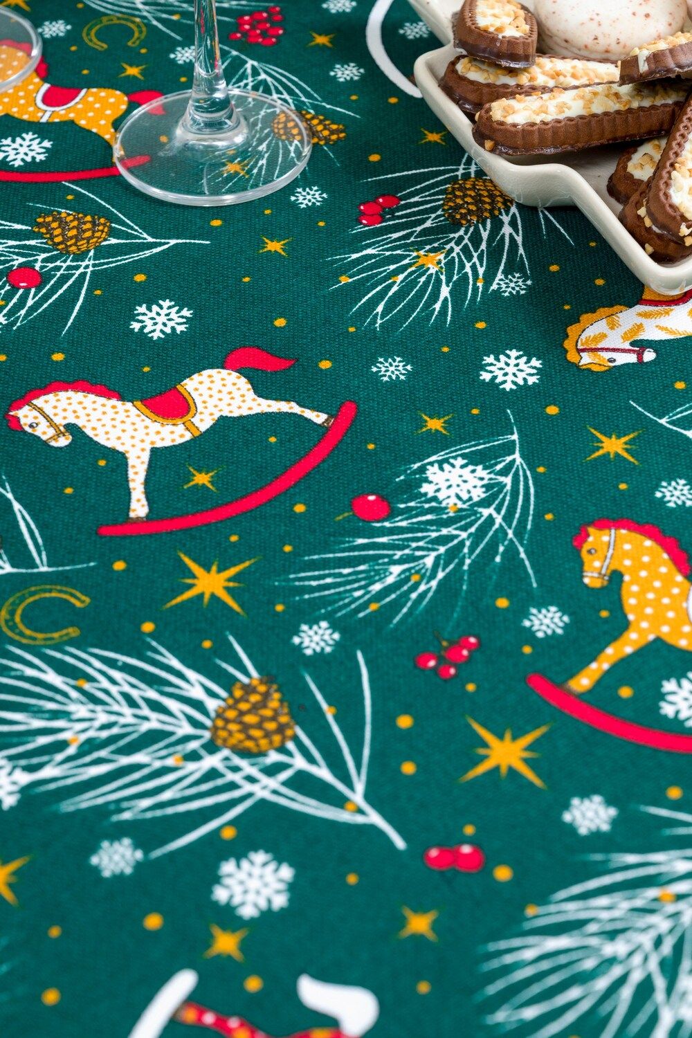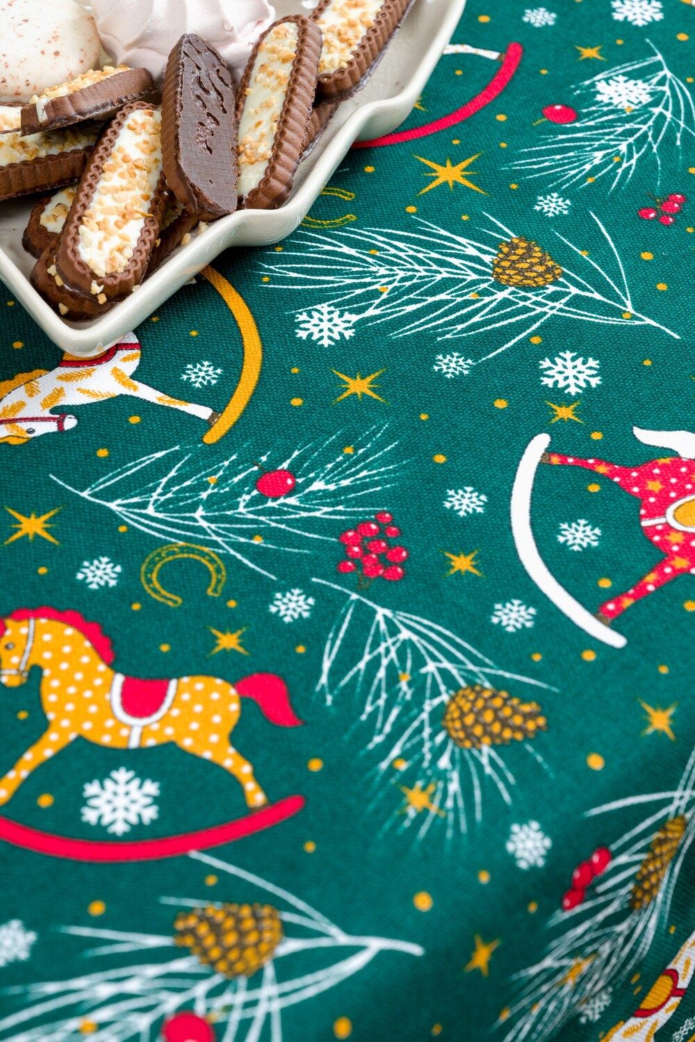 Новогодня скатерть с символом 2026 года "Лошадки" добавит капельку волшебства в ваш дом. Яркая зеленая скатерть с лошадками и зимними узорами станет отличным дополнением к интерьеру вашей кухни. Скатерть представлена в трех размерах, что позволяет выбрать идеально подходящий к вашему столу. Выполненная из 100% хлопковой рогожки скатерть "Лошадки" прекрасно держит яркость красок и первоначальный внешний вид долгие годы.