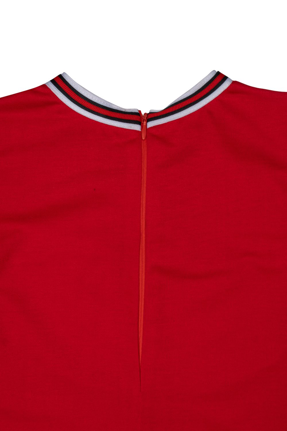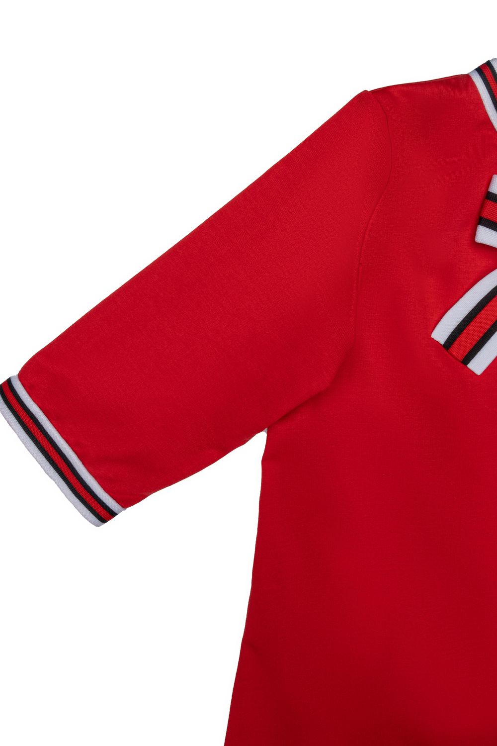 Элегантное платье для девочки для особых случаев и для повседневного наряда. Стильное платье выполнено из трикотажного полотна двунитки, отдельно трехцветной тесьмой, с потайной молнией по спинке. Простое в уходе, легко стирается и утюжится. По мере роста ребёнка может носиться как туника с брюками.