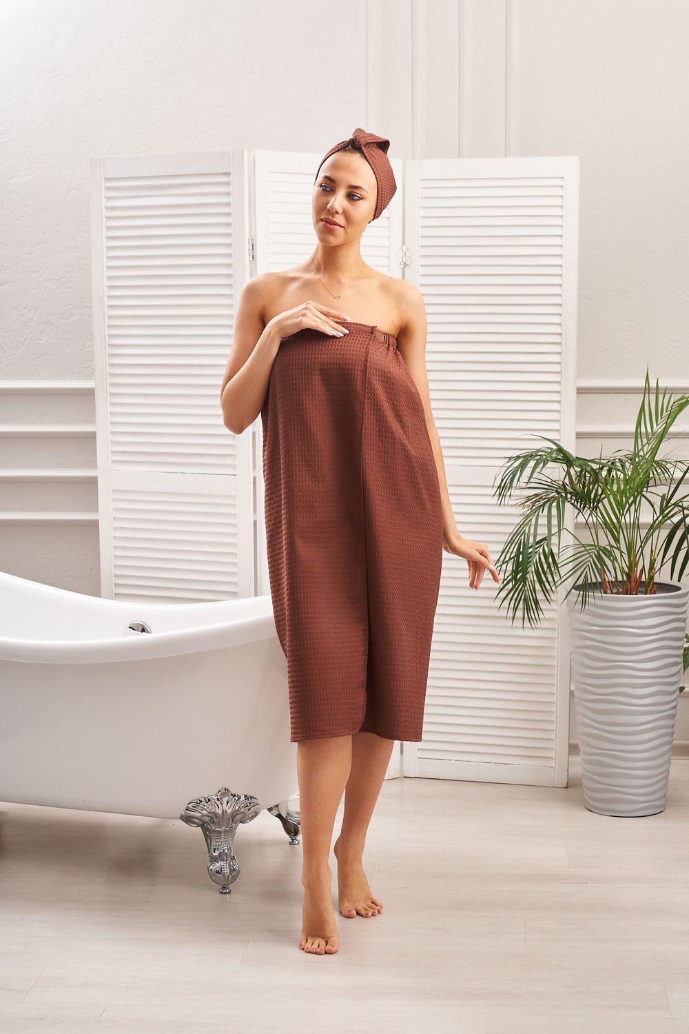 Ну кто не любит попариться в настоящей бане, или насладиться отдыхом и спа-процедурами? Если вы частая посетительница саун и бань, то вам непременно необходим этот великолепный килт банный женский. Этот набор банный заменит все для бани и сауны, при этом в комплект входит стильная чалма в подарок. Этот килт и тюрбан будут служить как халат и банная одежда для женщин, для детей и для девочек, как полотенце банное на резинке и даже как парео для пляжа. Текстиль банный вафельный - это чистый хлопок, вафельное полотно высокой плотности 240 г/м2 прекрасно впитывает влагу. Поэтому вафельные килты на резинке намного лучше впитывают влагу, чем махровый халат или полотенце и при этом он намного компактнее и занимает немного места. Килт вафельный размером 90х150 см идеально и надежно держится по фигуре. Комфортные и удобные накидка и шапочка станут вашим незаменимым спутником в бане, сауне, спа-салоне и просто в душевой спортивного клуба.