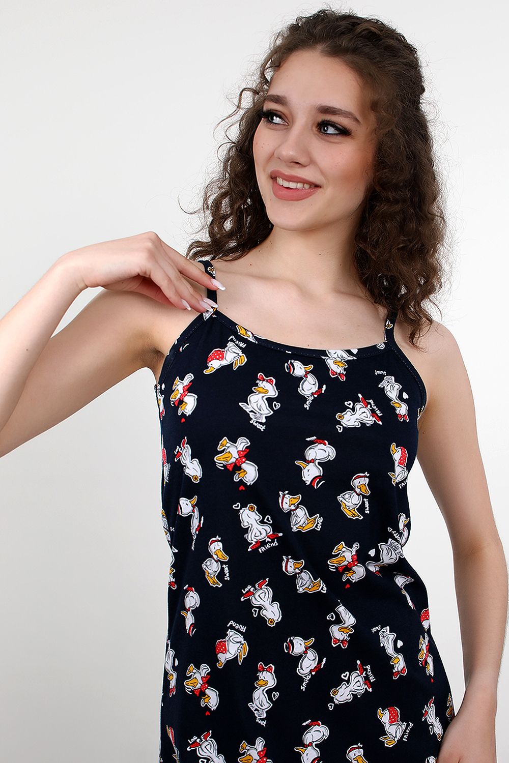 Женская сорочка на бретелях. Данная модель выполнена из трикотажного полотна кулирка (хлоок 100%), так же она не сковывает движения. Отлично подходит для комфортного сна и отдыха.