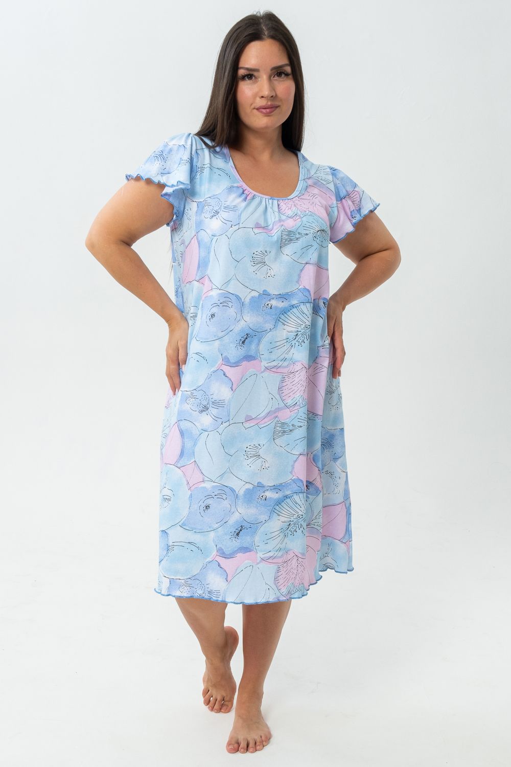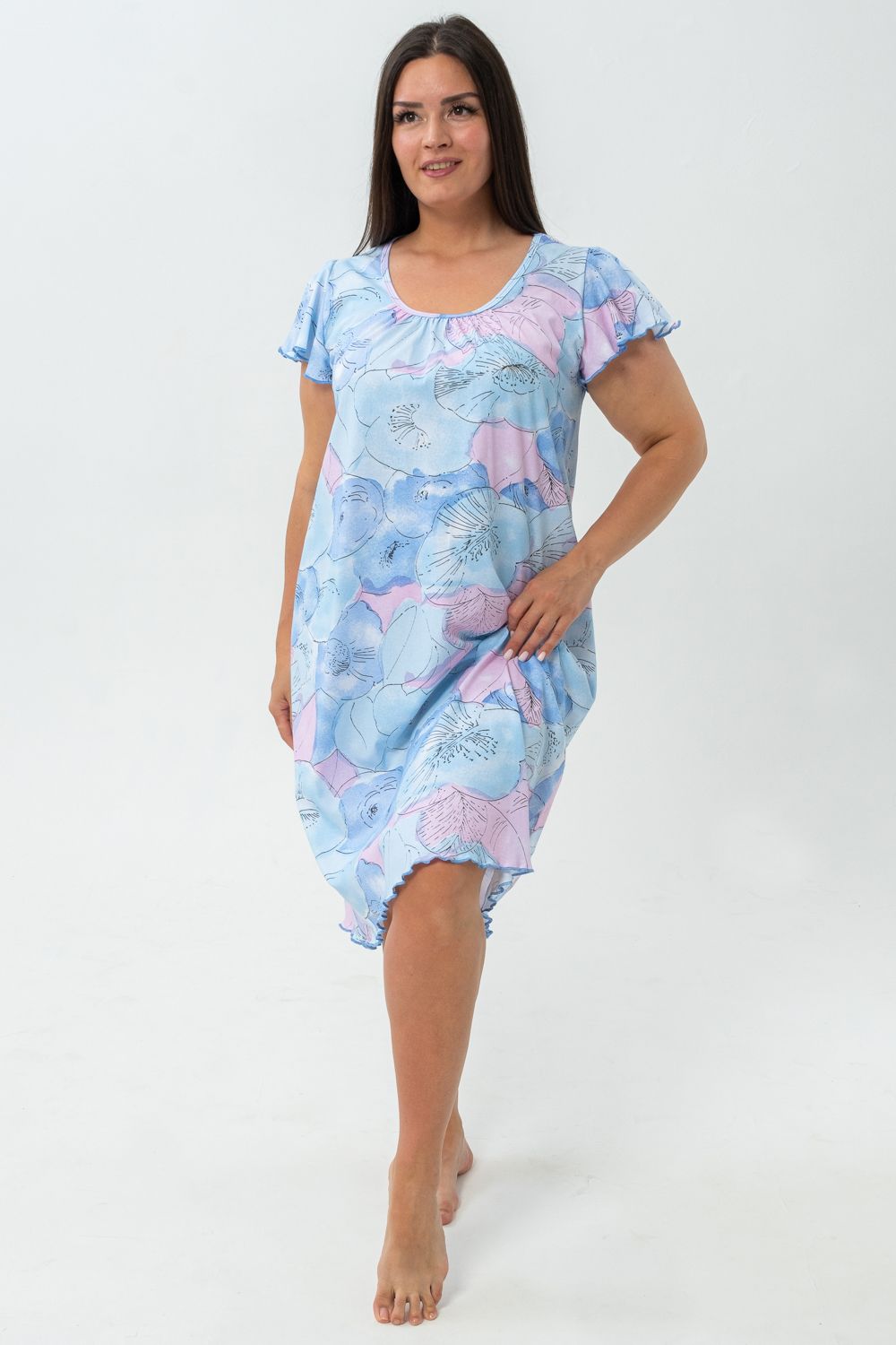 Женская ночная сорочка - это домашняя одежда предназначенная специально для сна. Комфортная длина, свободный крой, короткий рукав в виде крыла прикрывает плечо и создаёт ощущение уюта и защищённости. Широкий размерный ряд от 46 до 68 размера. Изделие из хлопка (100%) приятно к телу, гигроскопично и экологично. Ночные сорочки больших размеров с коротким рукавом будут очень удобны и комфорты не только для девочек, подростков и женщин, но и для бабушек. Красивая летняя рубашка - это ночное белье, которое должно присутствовать в гардеробе у каждой представительницы женского пола, а кулирное трикотажное полотно обеспечит высокое качество изделия и его долговечность. Такие летние рубашки свободного кроя пользуются особой популярностью не только у женщин, они просто не заменимы и для девушки, и для бабушки. У сорочки приятная расцветка в двух колористиках: нежные розово-сиреневые тона и приятный голубой, такая сорочка не оставит равнодушным никого. Стильная свободная универсальная ночнушка будет отлично сочетаться с домашним халатом и отлично носиться в любой сезон. Это отличный подарок подруге, маме, бабушке, жене, девушке или сестре.