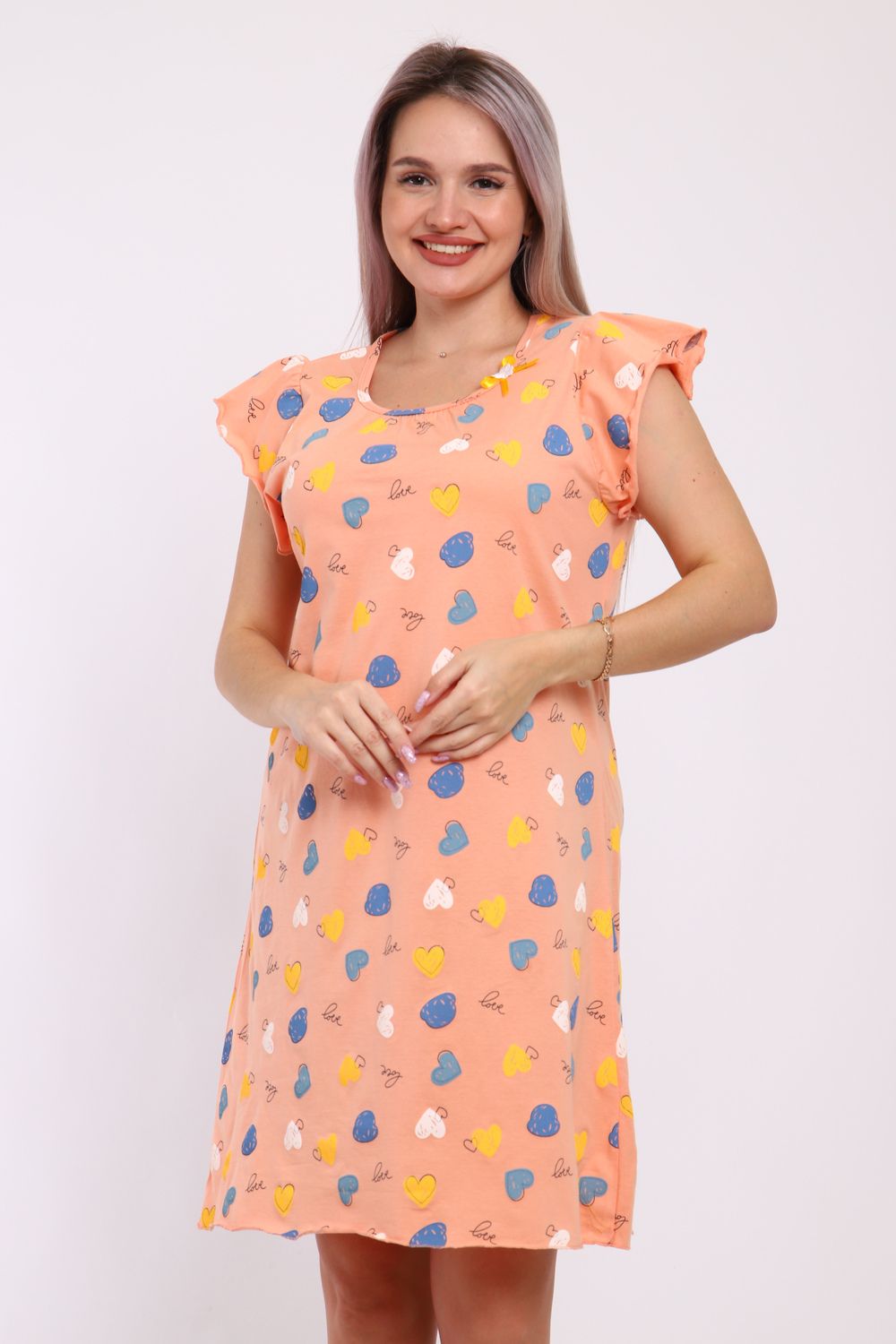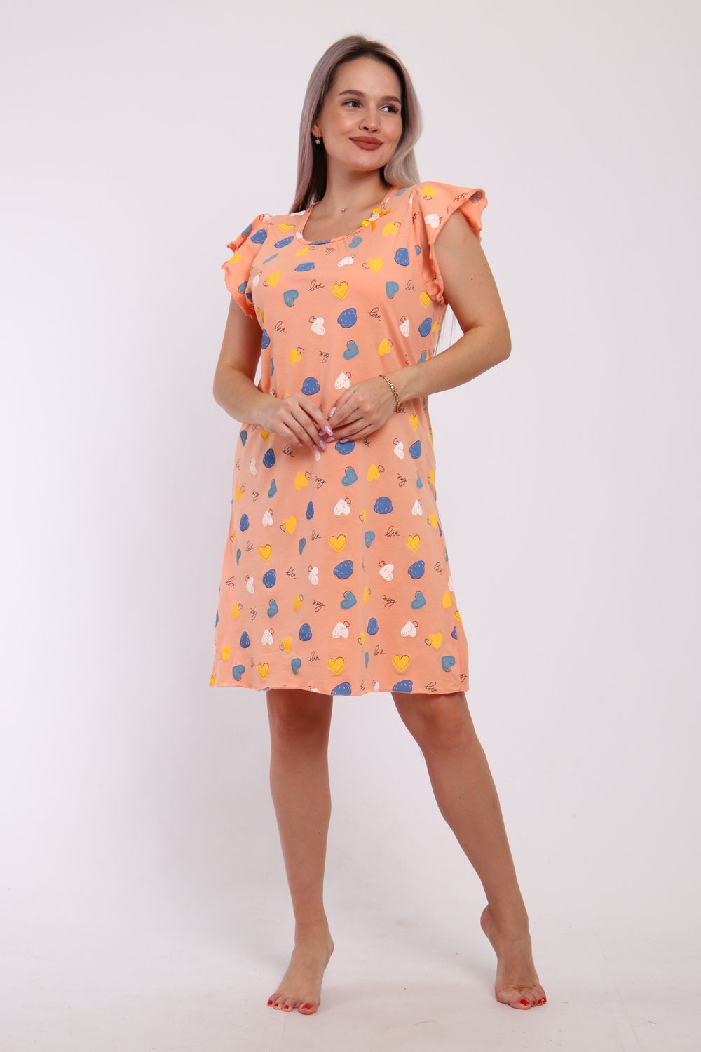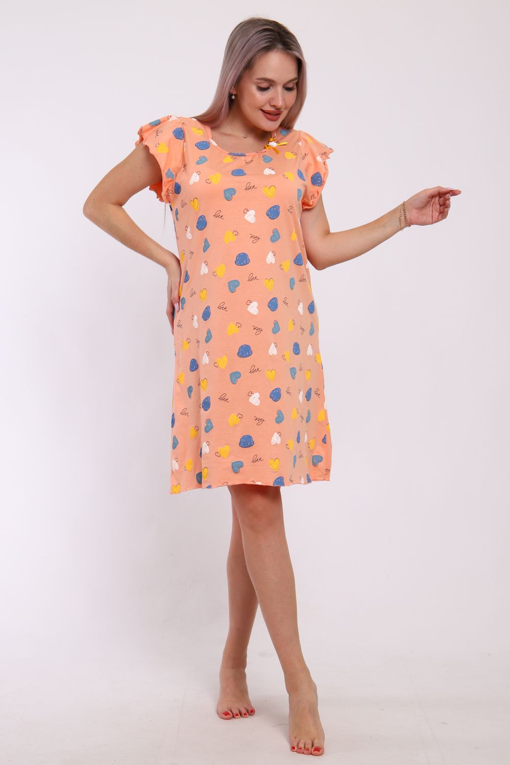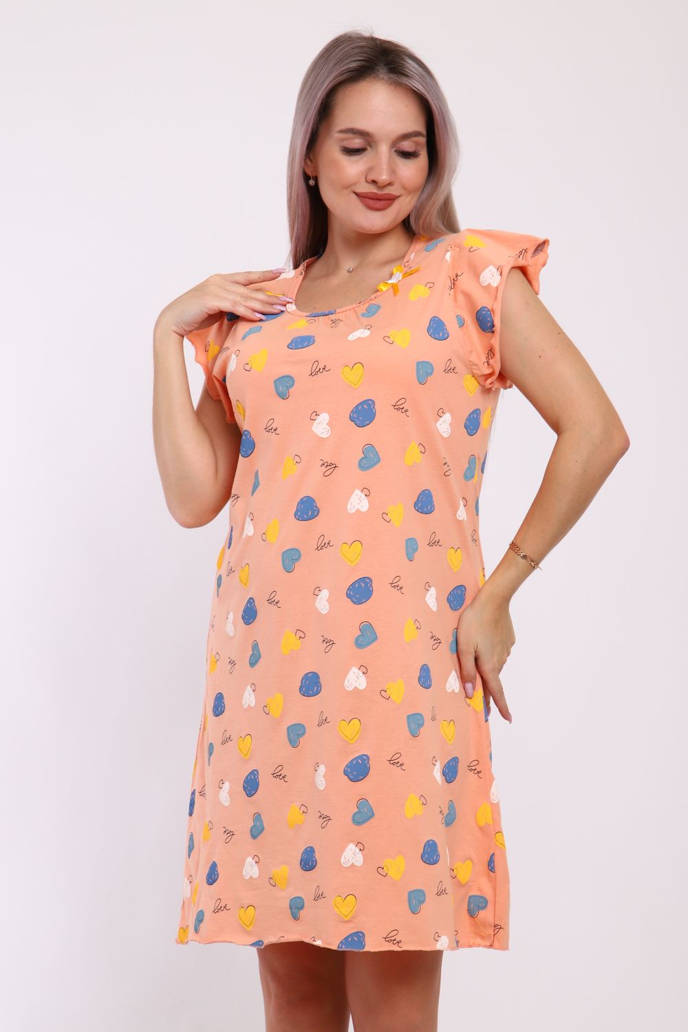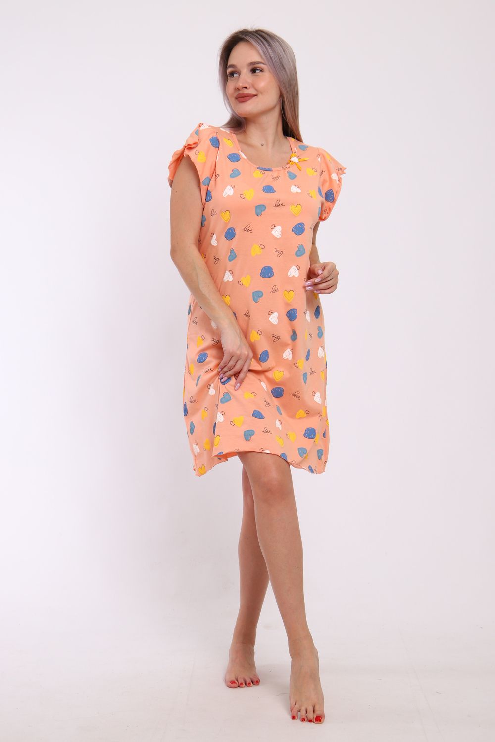 Сорочка женская прямого кроя. Рукав и низ обработан краевка.