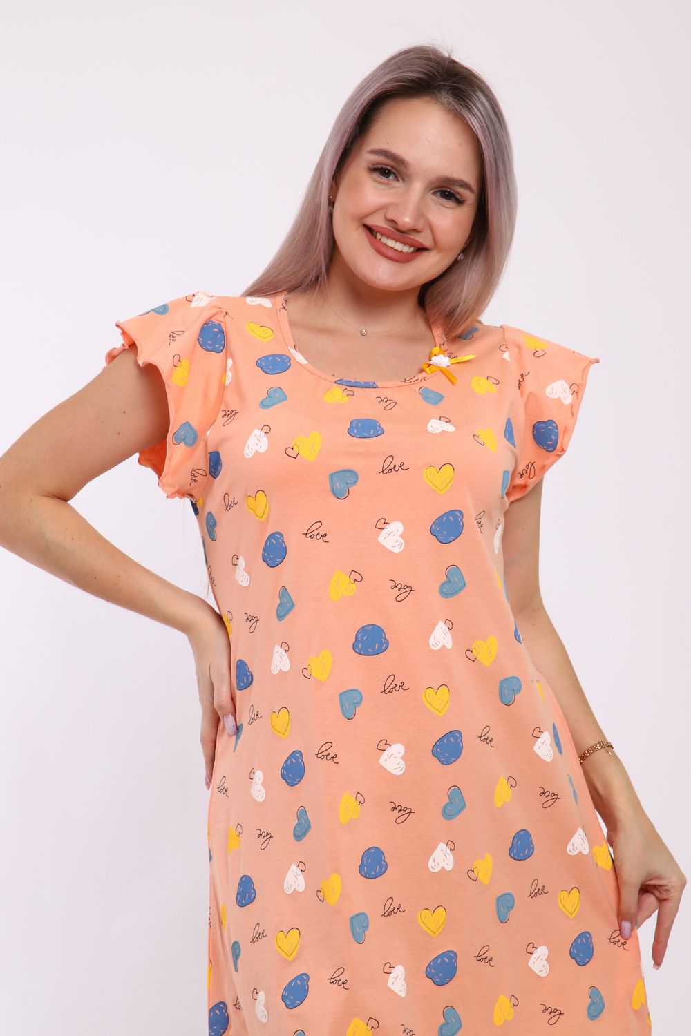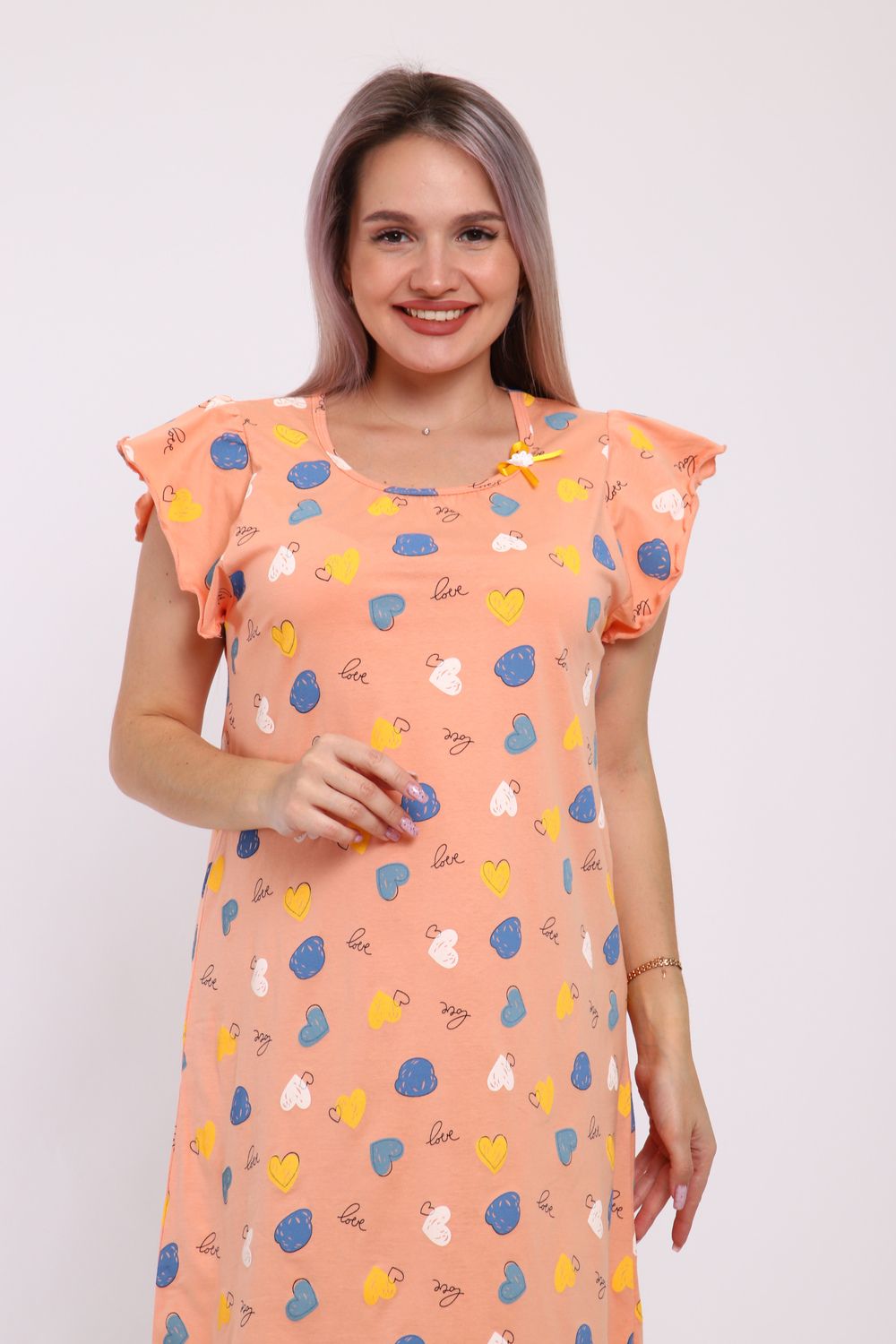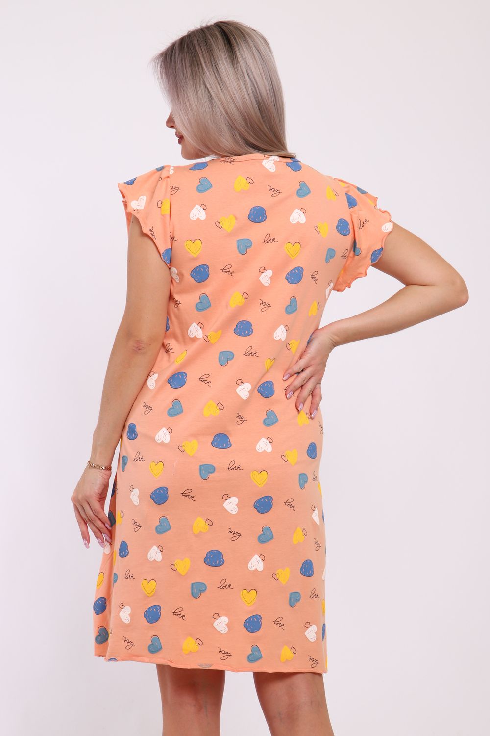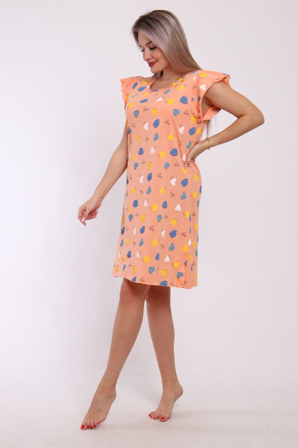 Сорочка женская прямого кроя. Рукав и низ обработан краевка.