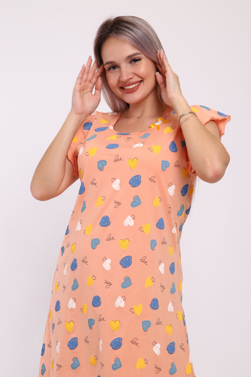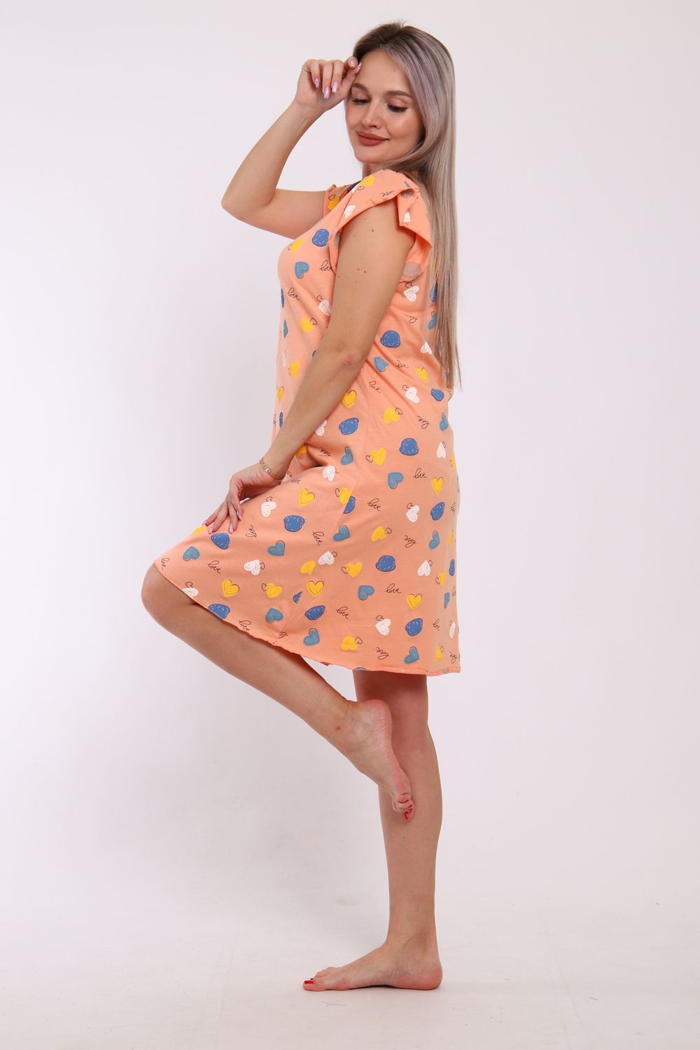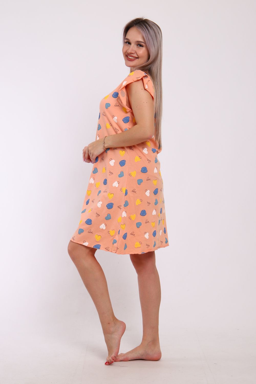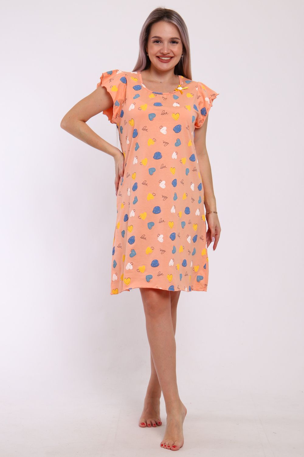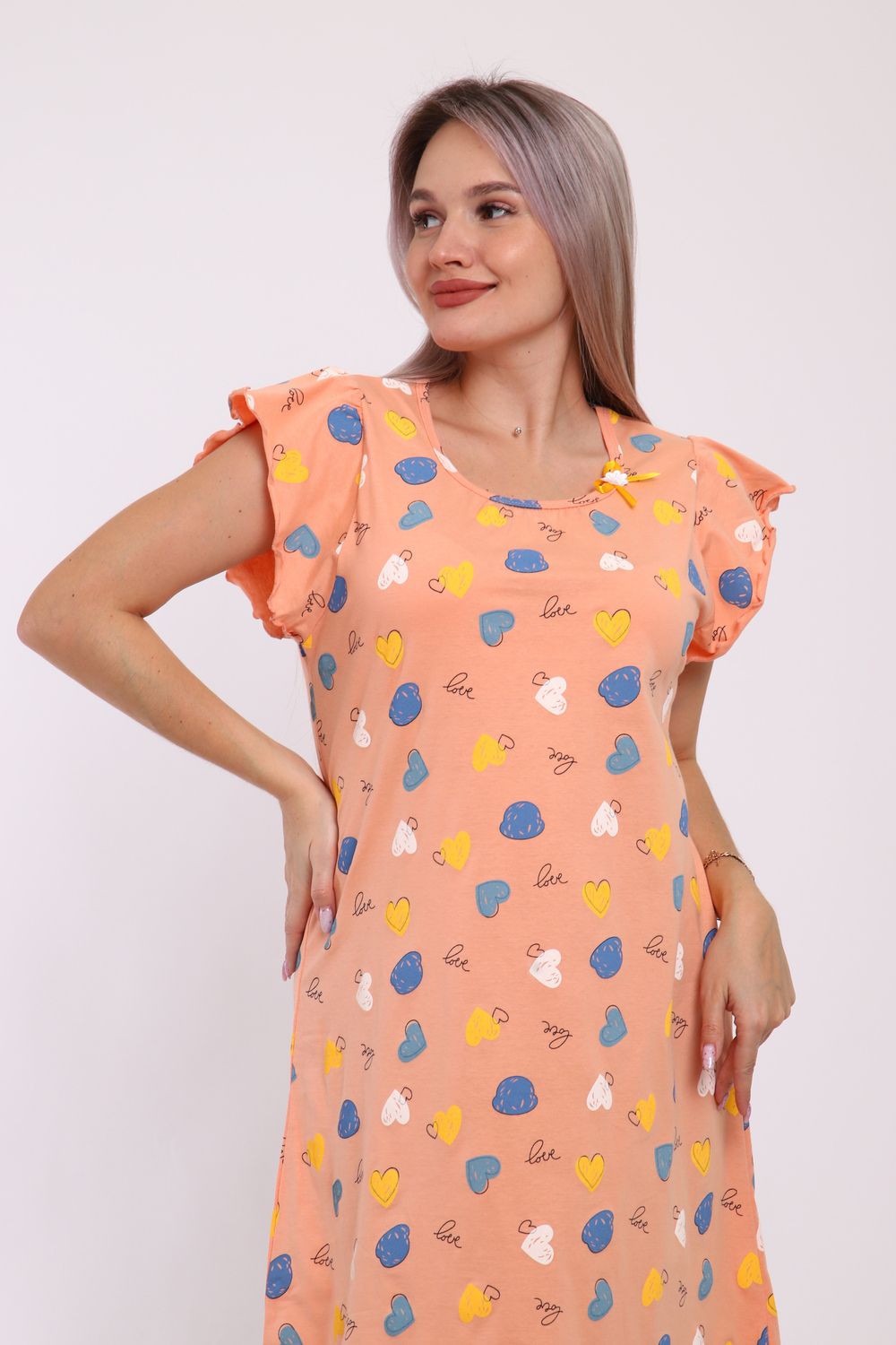 Сорочка женская прямого кроя. Рукав и низ обработан краевка.