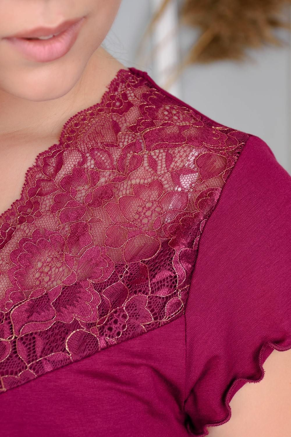 Сорочка женская с кокеткой из кружева с люрексом. Под кокеткой по линии груди - складки. Рукав и низ сорочки обработаны краевым швом.