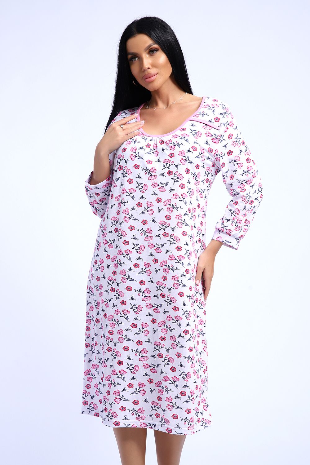 Сорочка из хлопковой белоземельной кулирки с нежным цветочным рисунком, рукава длинные.