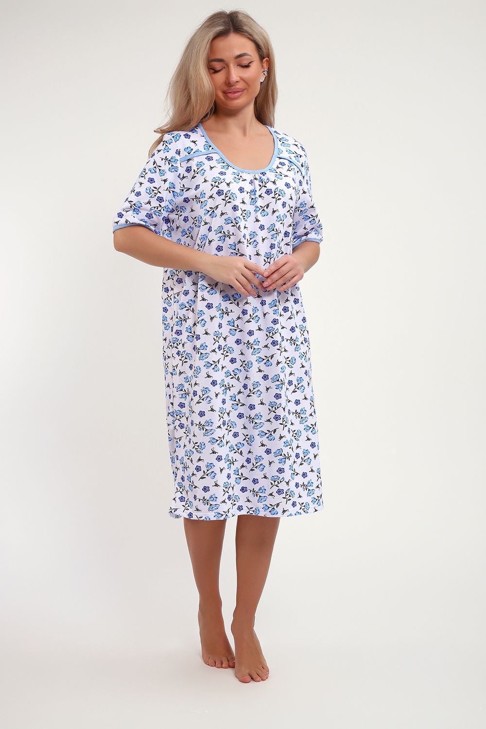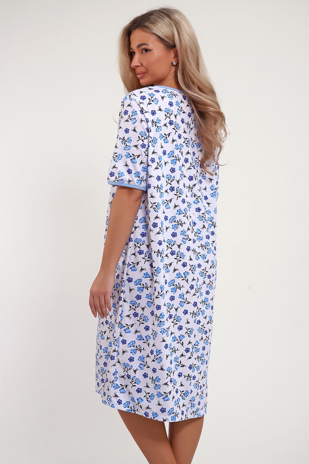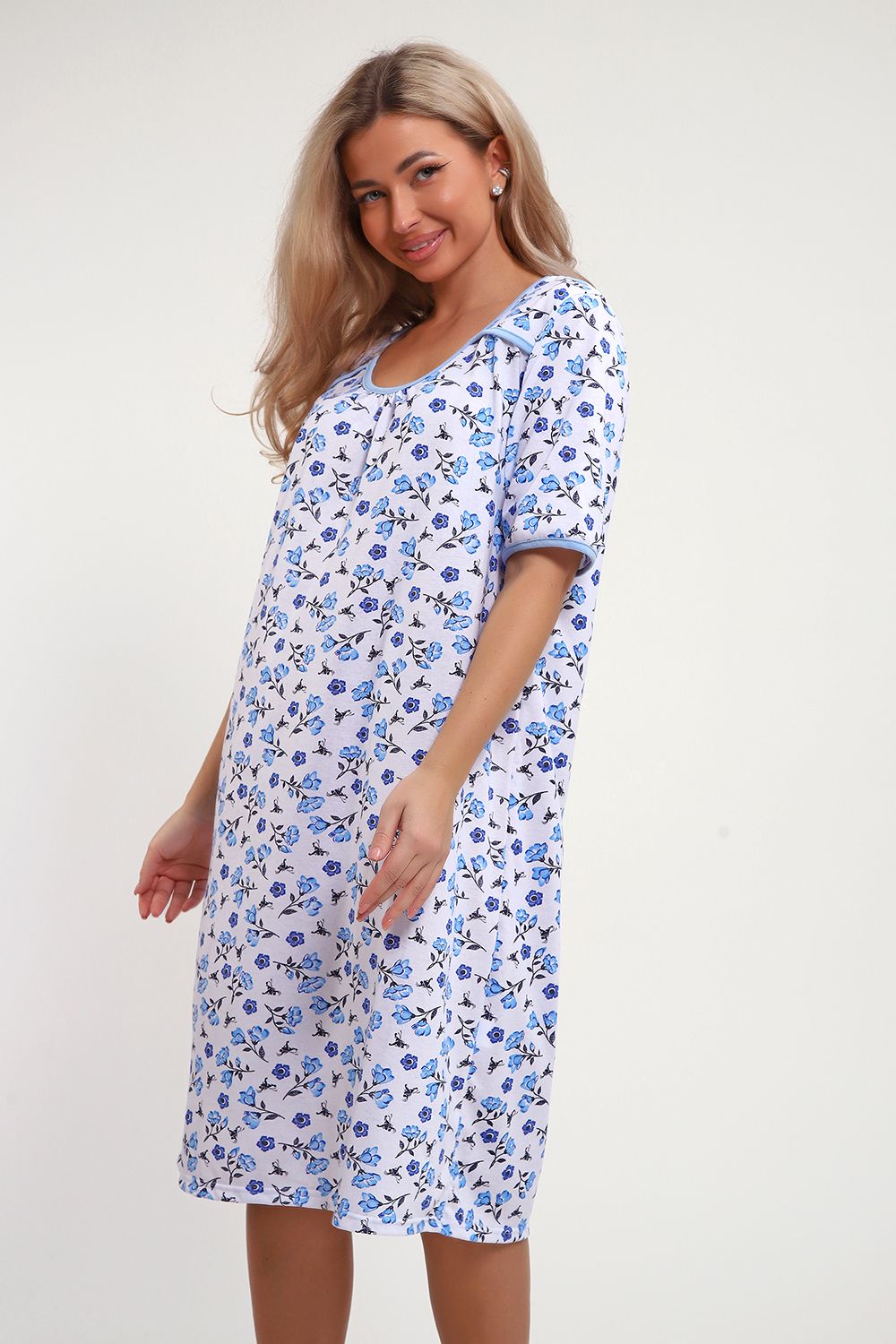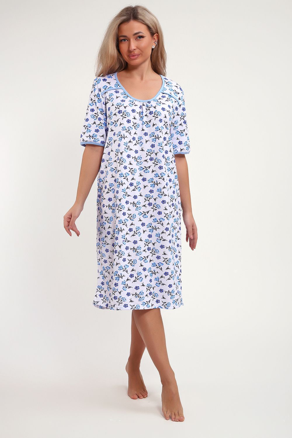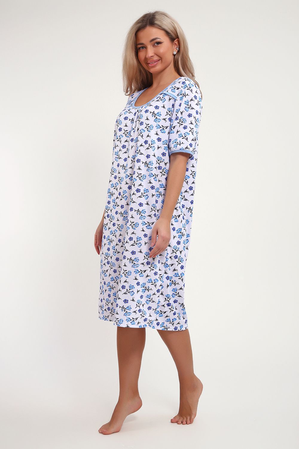 Сорочка из белоземельной хлопковой кулирки с нежным цветочным рисунком, рукава до локтя.