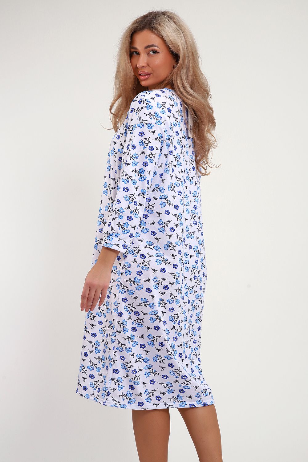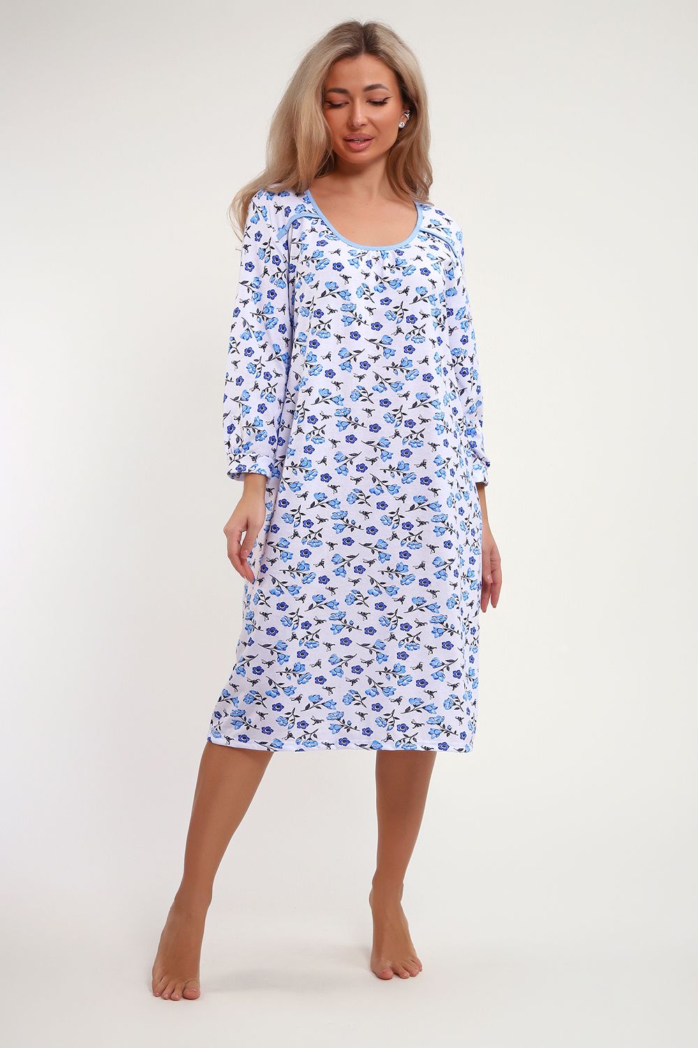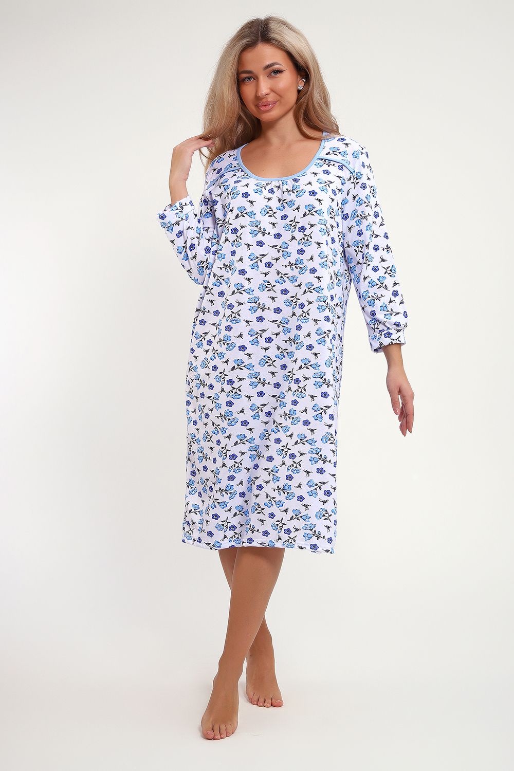 Сорочка из хлопковой белоземельной кулирки с нежным цветочным рисунком, рукава длинные.