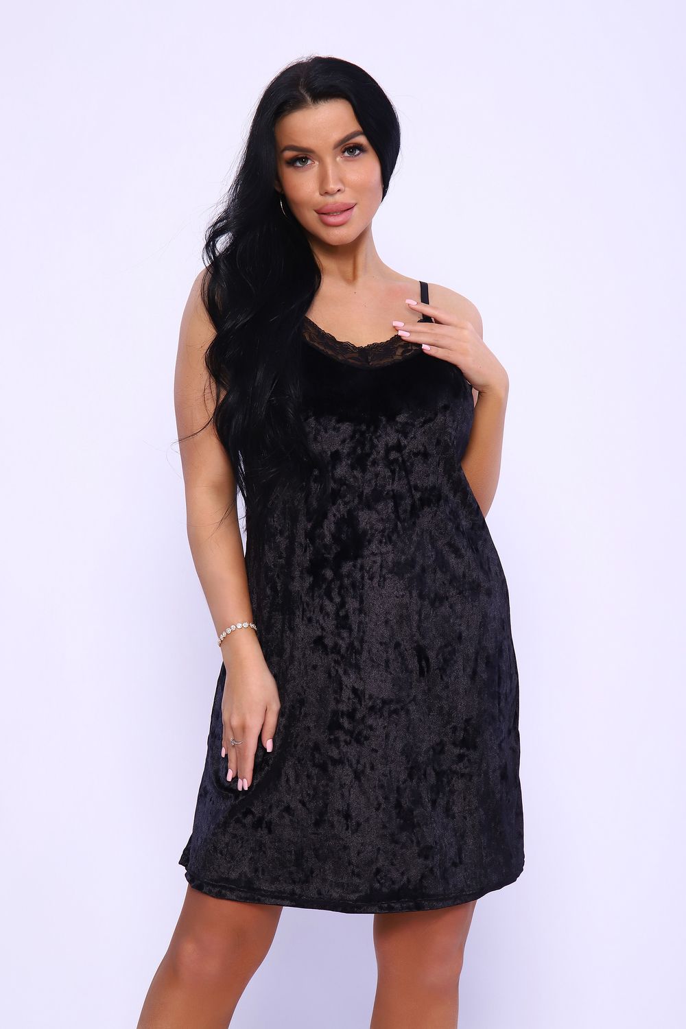 Сорочка женская на бретелях полуприлегающего силуэта. Длина чуть выше колена, полочка оформлена декоративным элементом - кружево. Ворсовая поверхность сорочки переливается во время движения, ткань не мнется и не растягивается. Мягкий бархат в сочетании с романтичным кружевом создаст женственный и привлекательный образ. Можно составить комплект с халатом 51652, товары продаются отдельно.