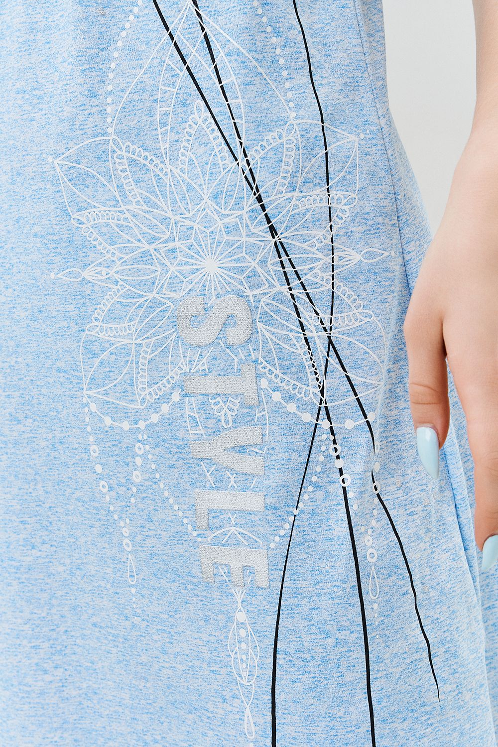 Сорочка на бретелях, полуприлегающего силуэта, длиной выше колена. Полочка с кокетками, под грудью собрана на резинку. В нижней части боковых швов обработаны разрезы. Проймы, бретели и кокетки полочки обработаны бейкой из основного полотна.