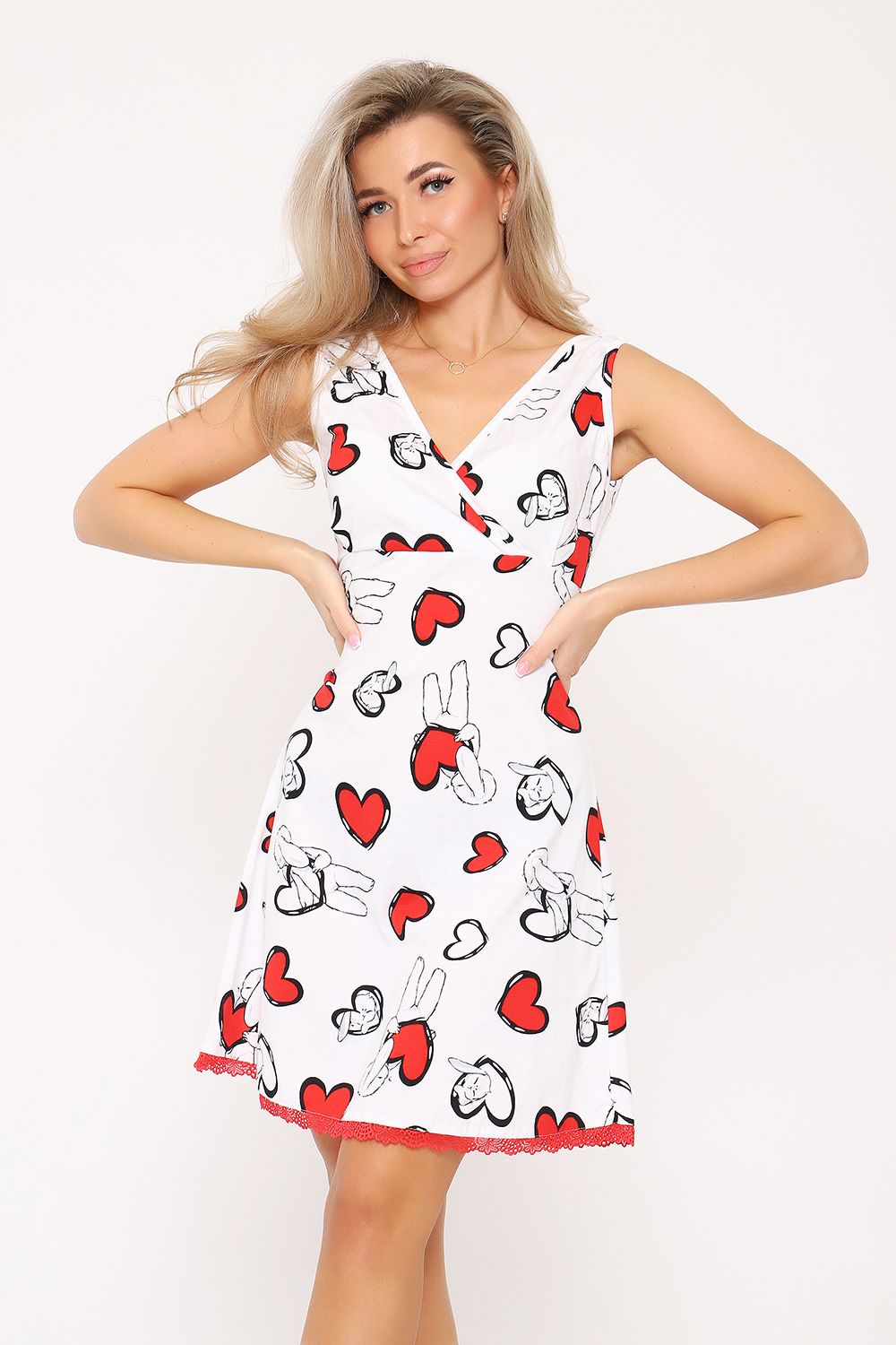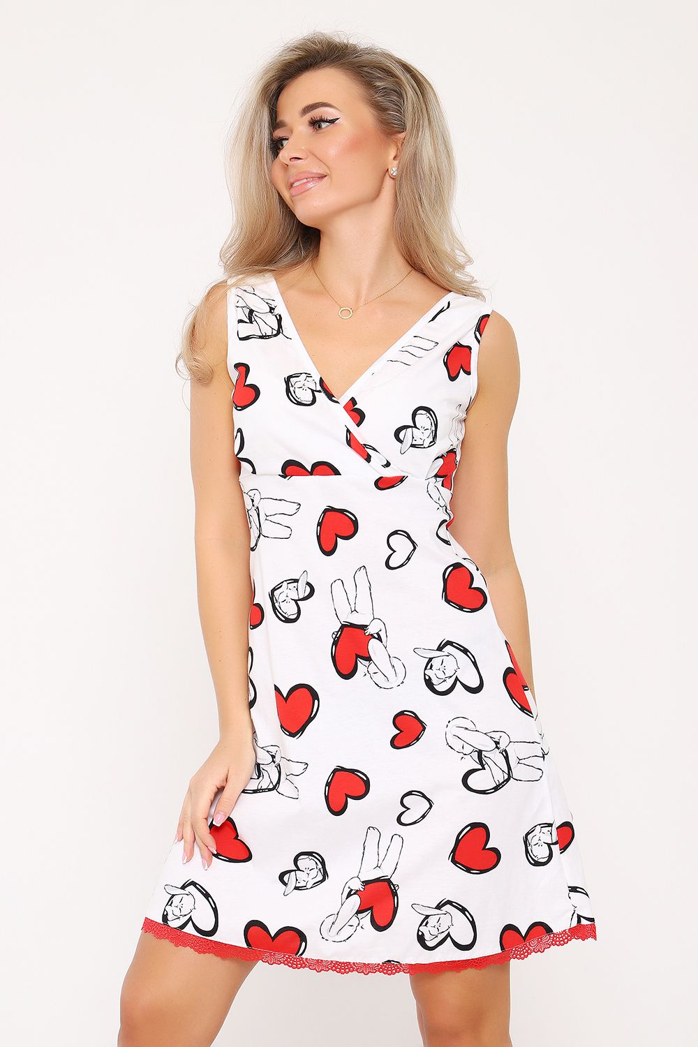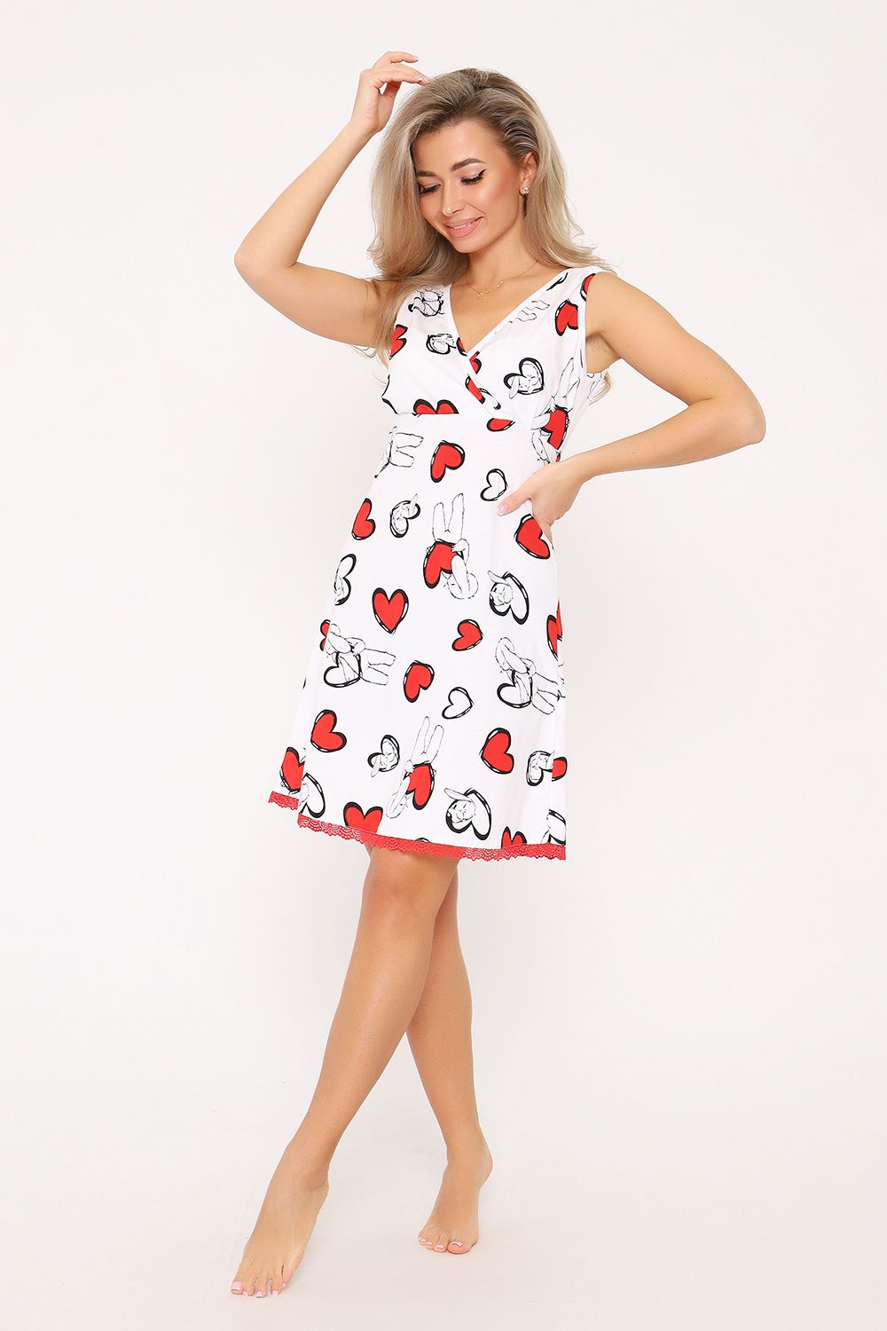 Сорочка женская без рукавов с V-образным вырезом. Данная модель выполнена из трикотажного полотна кулирка (хлопок 100%) . Полочка отрезная , горловина на запах. Низ изделия обработан изящным кружевом. Отличная модель для сна и для романтического настроения .