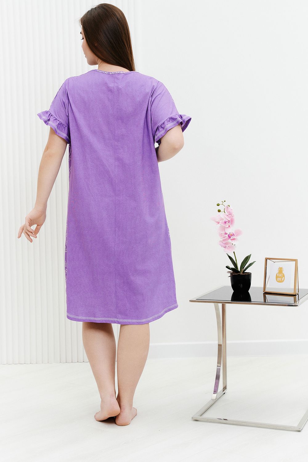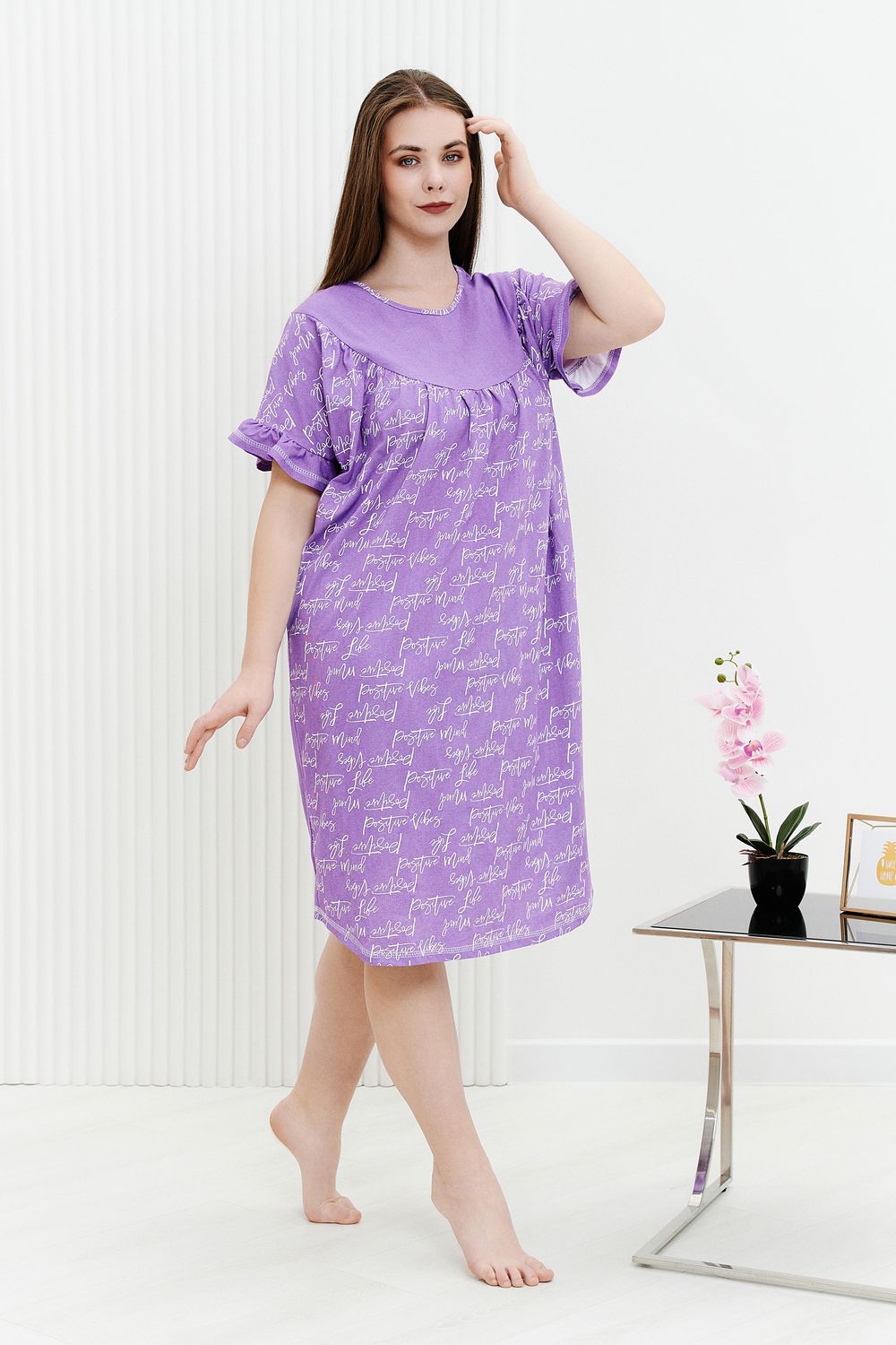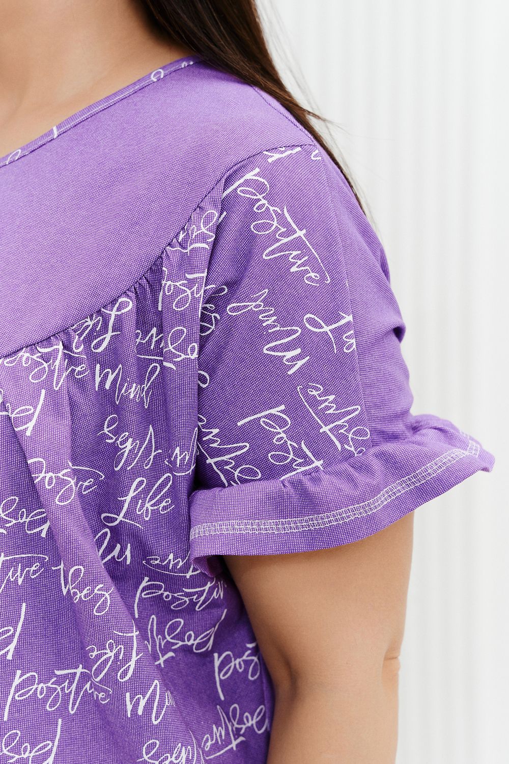 Сорочка женская, прямого силуэта, рукав короткий цельнокроенный с рюшей, горловина округлая. На полочке кокетка. Сборка верхней части полочки по линии притачивания кокетки обеспечивает изделию достаточную свободу и комфорт.