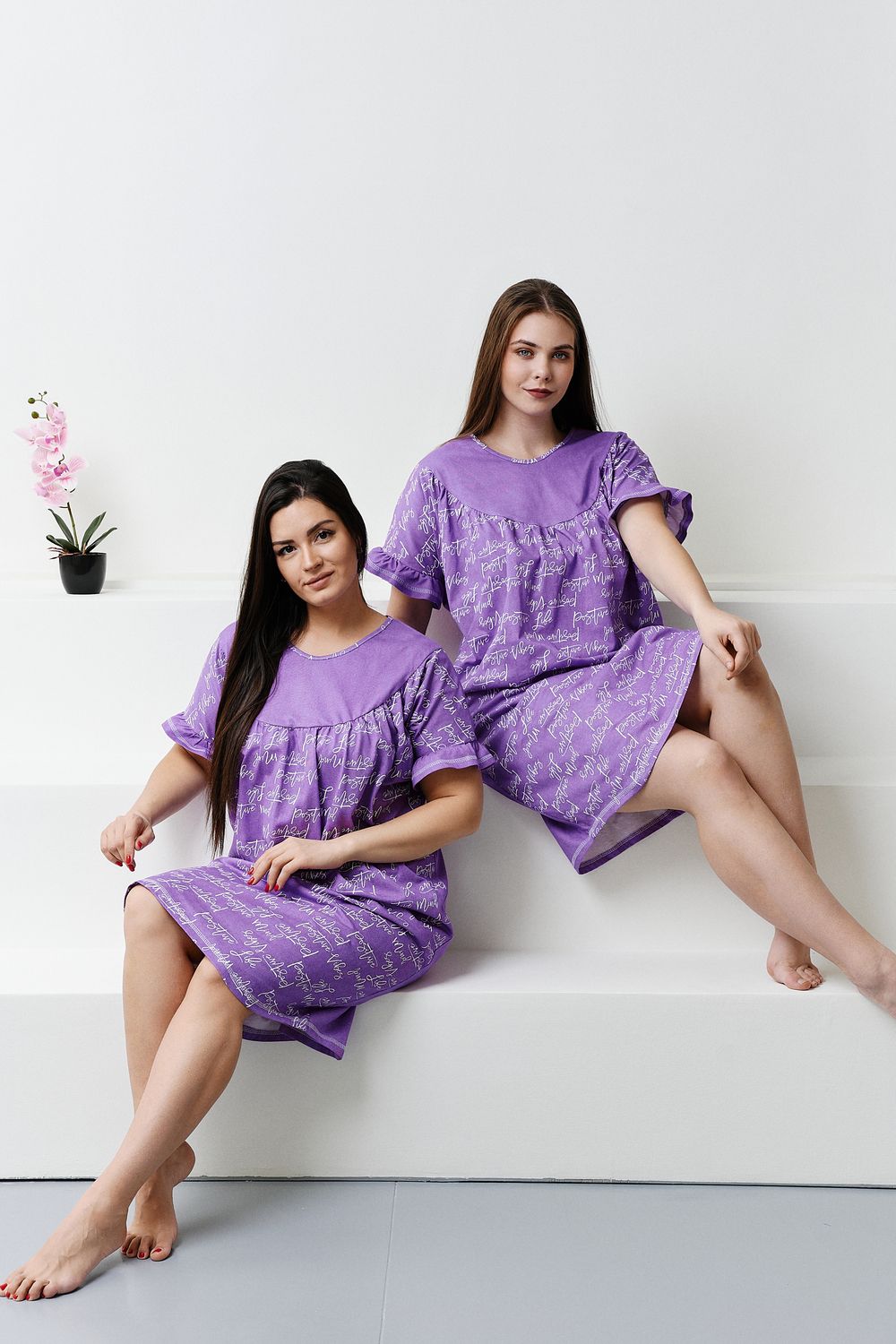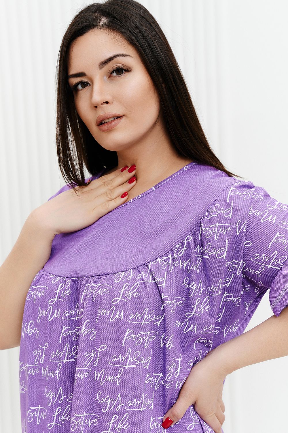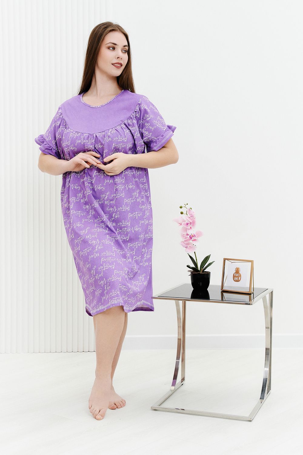 Сорочка женская, прямого силуэта, рукав короткий цельнокроенный с рюшей, горловина округлая. На полочке кокетка. Сборка верхней части полочки по линии притачивания кокетки обеспечивает изделию достаточную свободу и комфорт.