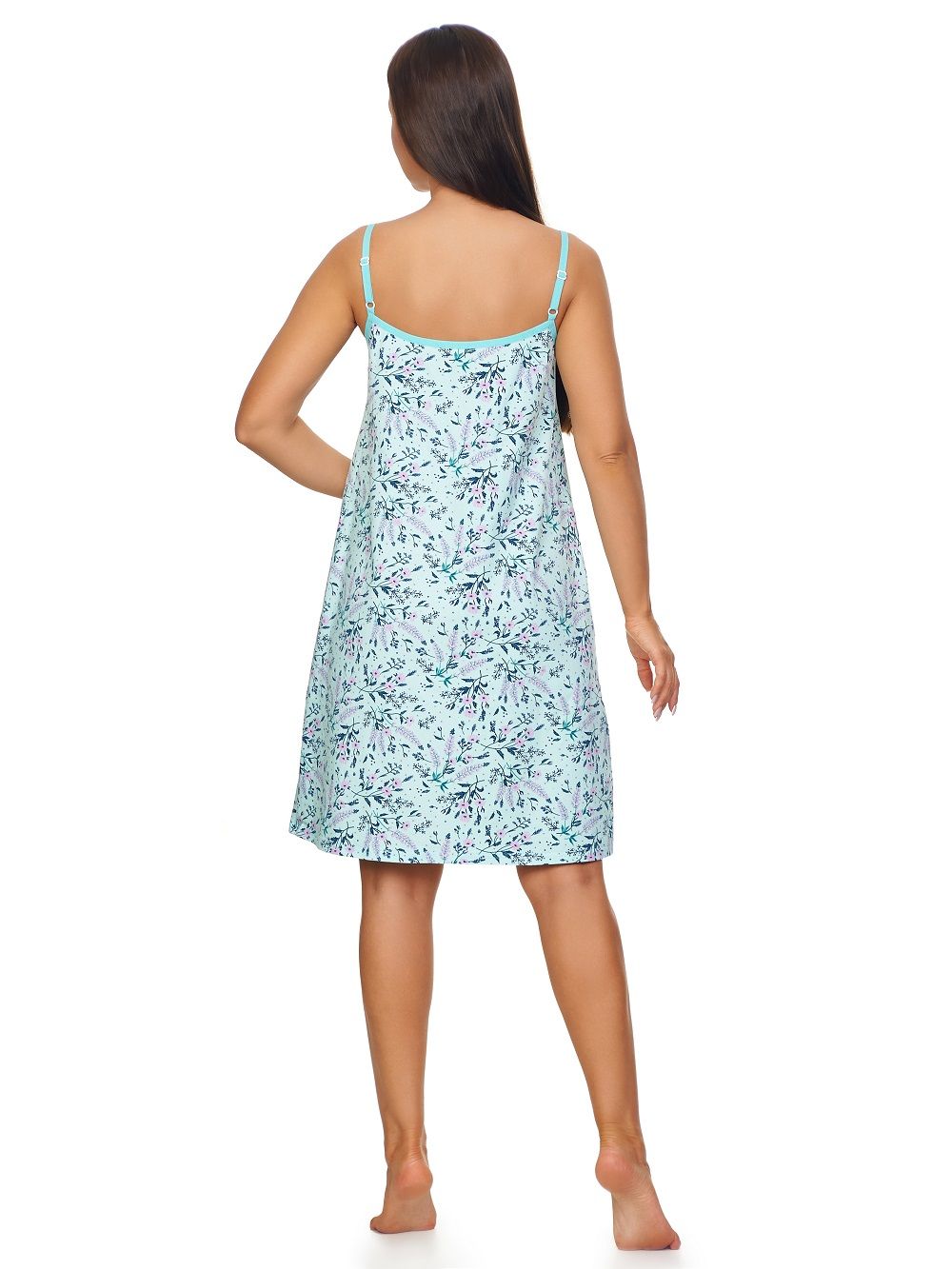 Сорочка женская выполнена из приятного хлопкового трикотажного полотна с милым цветочным рисунком. Сорочка свободного кроя и оптимальной длины. Бретели выполнены из эластичной плоской резинки с регулятором длинны, что добавляет комфорта при носке сорочки, так как позволяет регулировать длину бретели, не оказывая давления на тело. По полочке выполнено нежное кружево. Сборка по полочке дает дополнительный объем в области груди, не стесняя в движений.