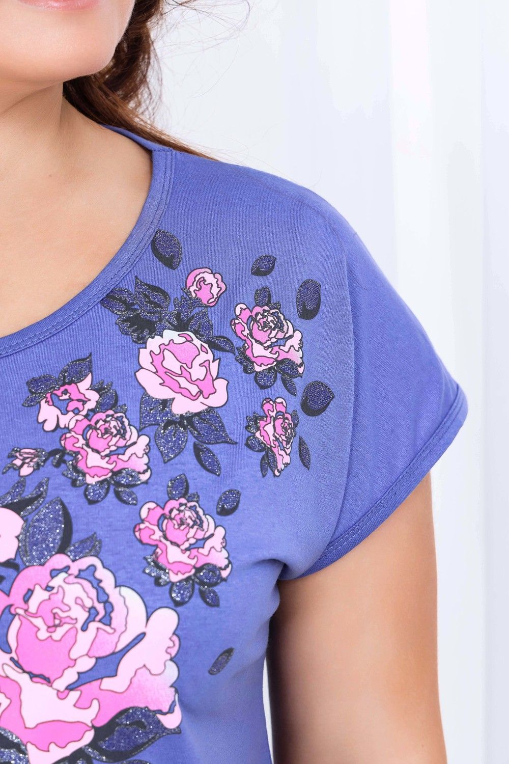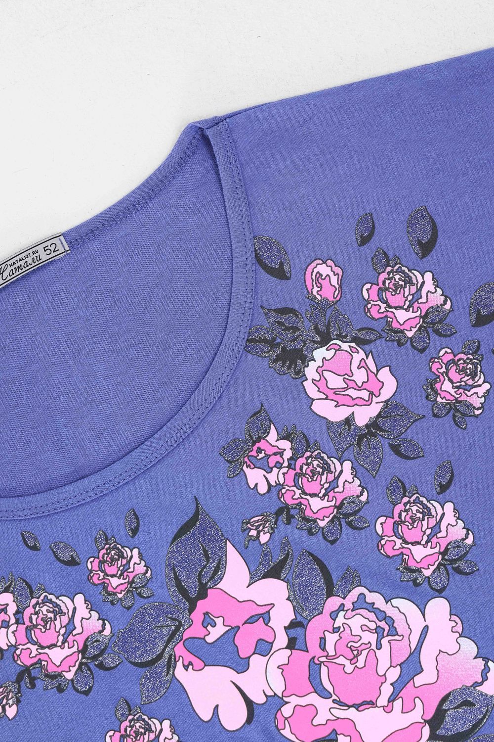 Нежная сорочка с оригинальным принтом в виде россыпи цветов, в лепестках которых - серебристый глиттер. Спущенная пройма. Простой, удобный крой. Для более свободной посадки рекомендуем заказывать на 1-2 размера больше