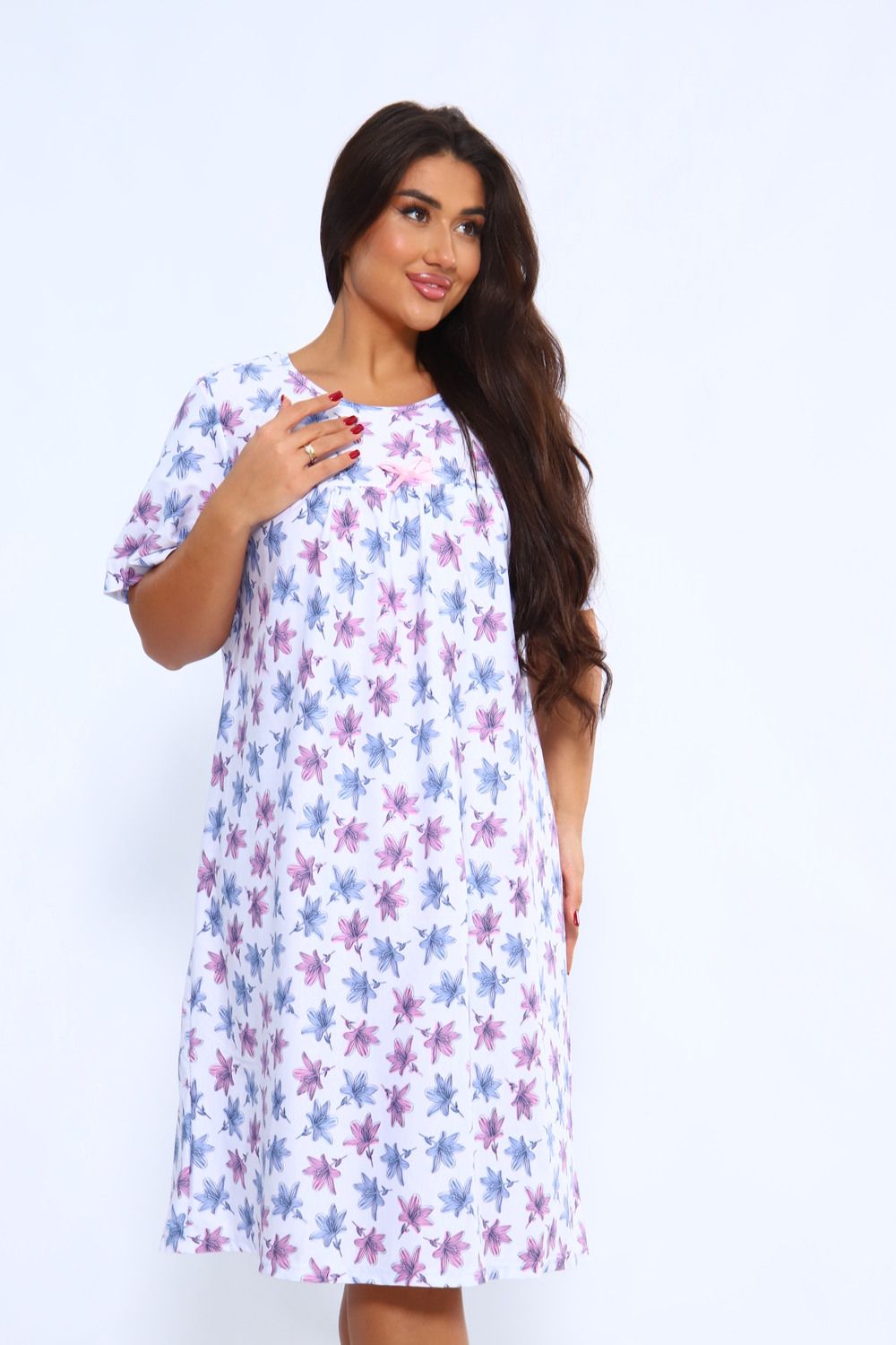Сорочка женская выполнена из 100 % хлопка, благодаря чему очень приятная к телу. Модель свободного кроя, не сковывает движения во время сна.