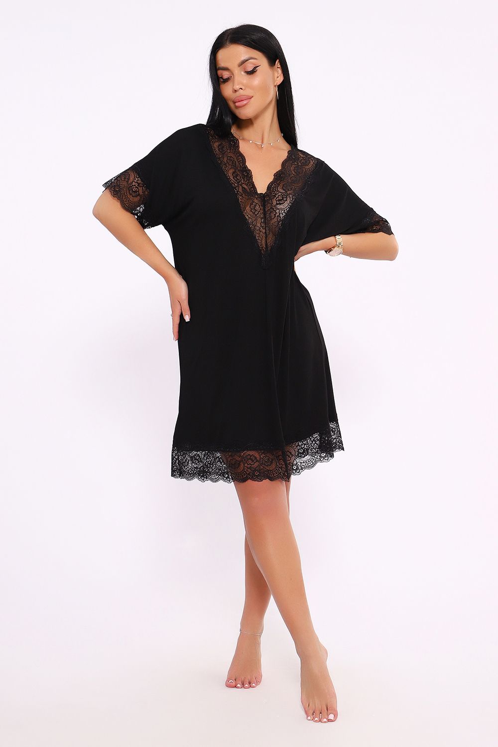 Сорочка-кимоно, которая не оставит равнодушной ни одну модницу, Эта ночнушка выполнена в свободном крое, подойдет обладательницам фигур различных типов, включая большие размеры. Мягкая ткань приятно облегает тело, обеспечивая свободу движений и комфортный сон в любое время года. Элегантный дизайн с кружевными элементами добавляет нотку романтики и женственности, что делает эту сорочку прекрасным выбором для вечернего отдыха дома. Не упустите возможность обрести элегантность и комфорт в одном изделии, которое станет верным спутником для каждой женщины.