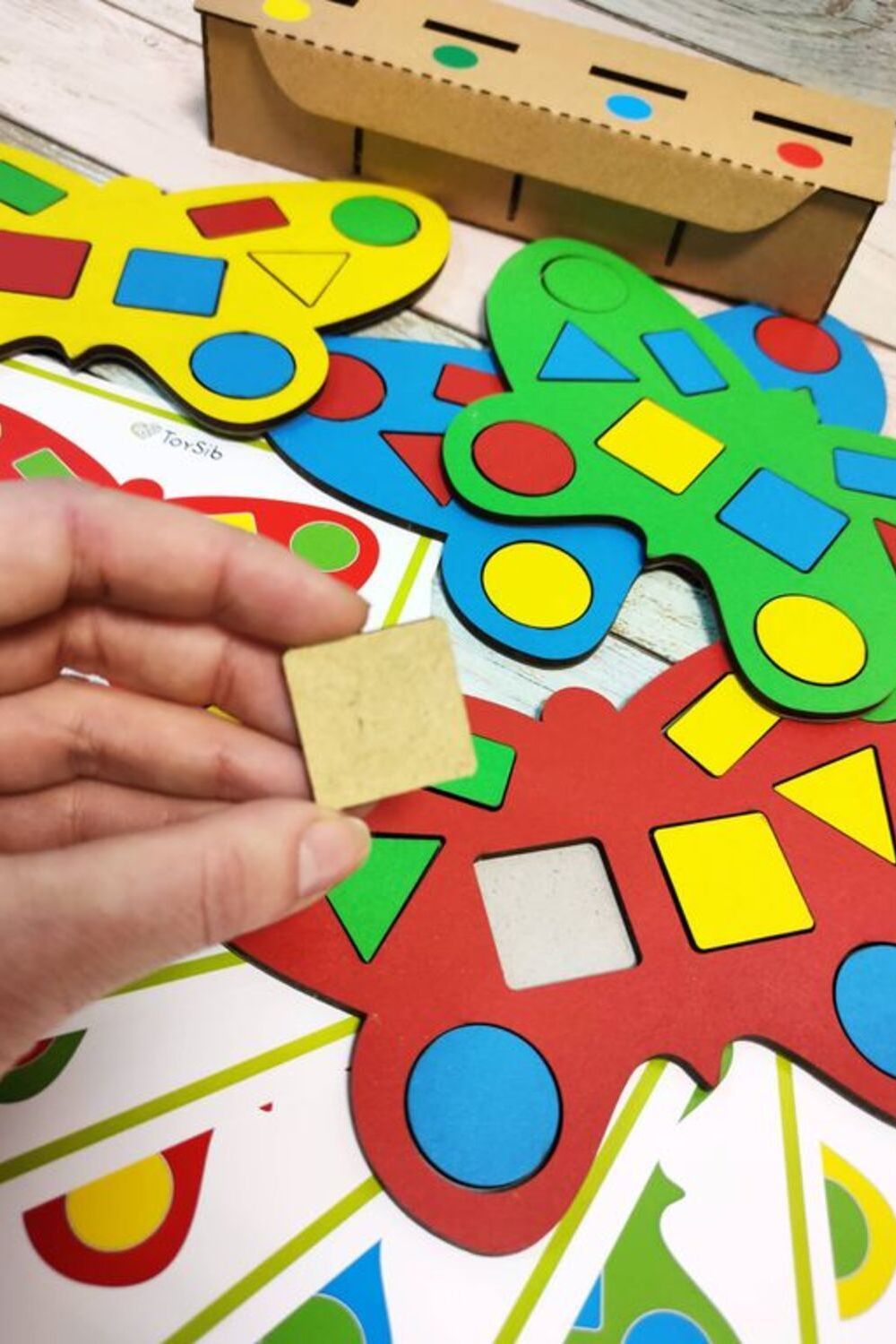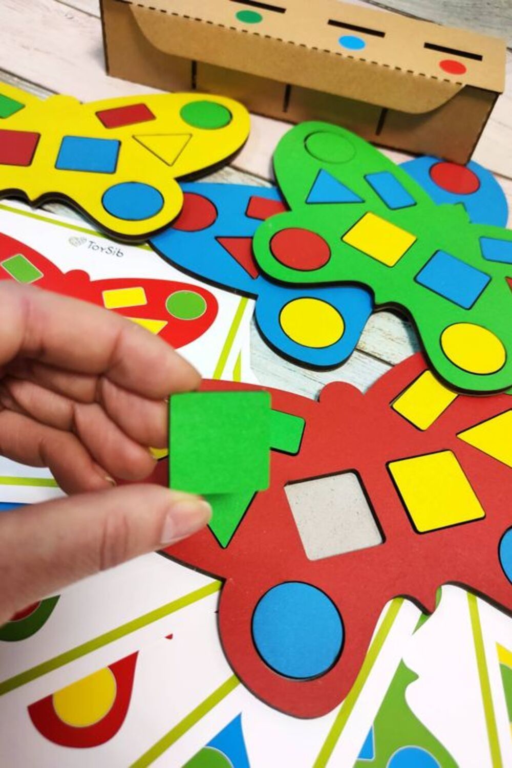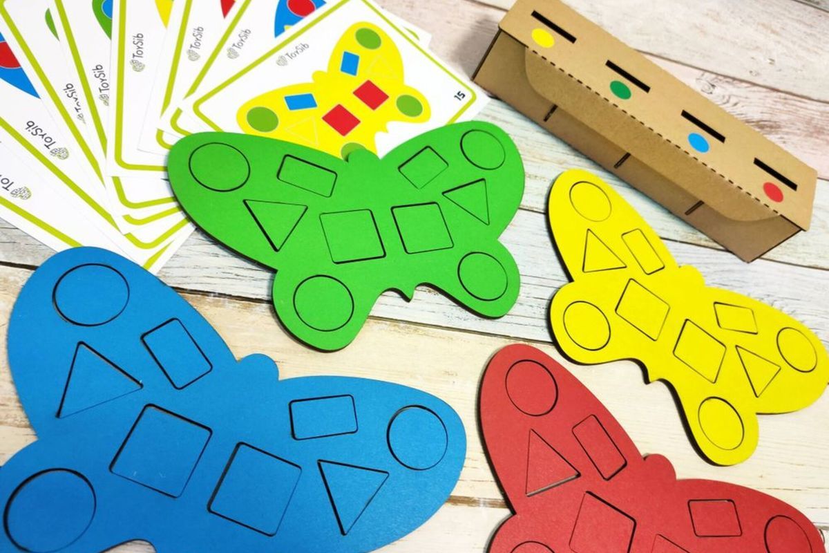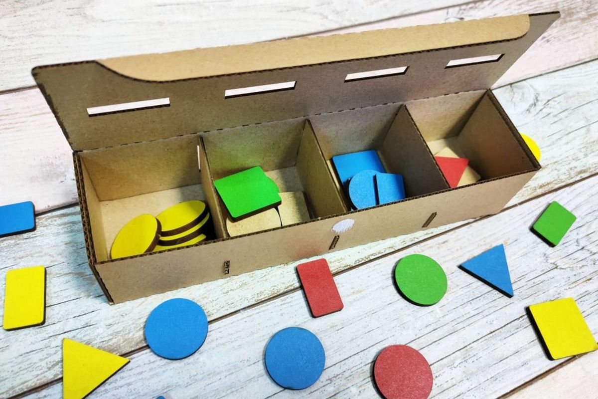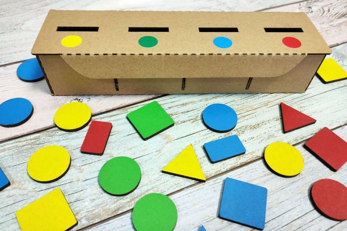 - Перемешайте фишки, устройте соревнования - кто быстрее отправит все фигуры в сортер.