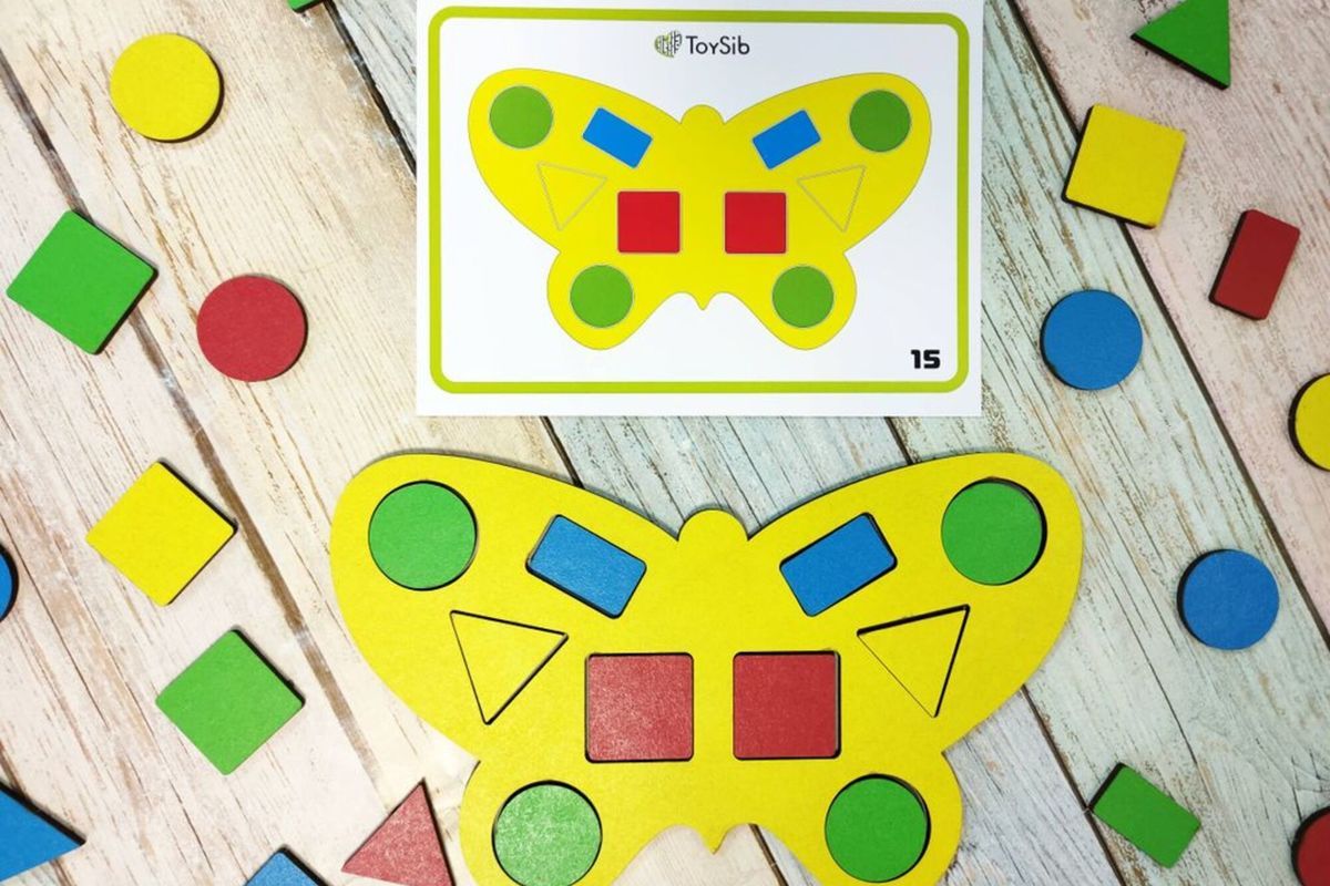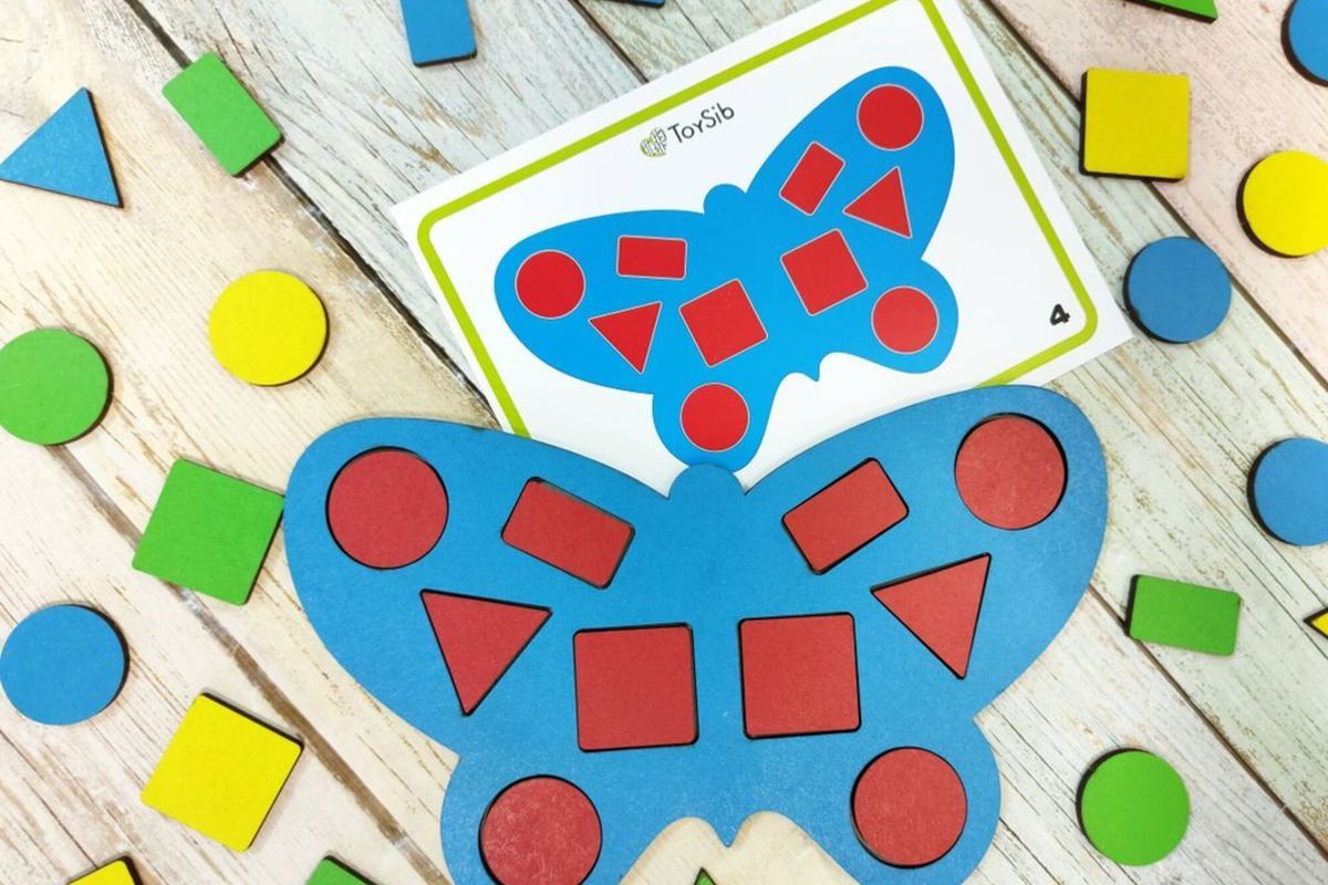 - попросите раскрасить бабочку геометрическими фигурами по образцу, изображенному на карточке.