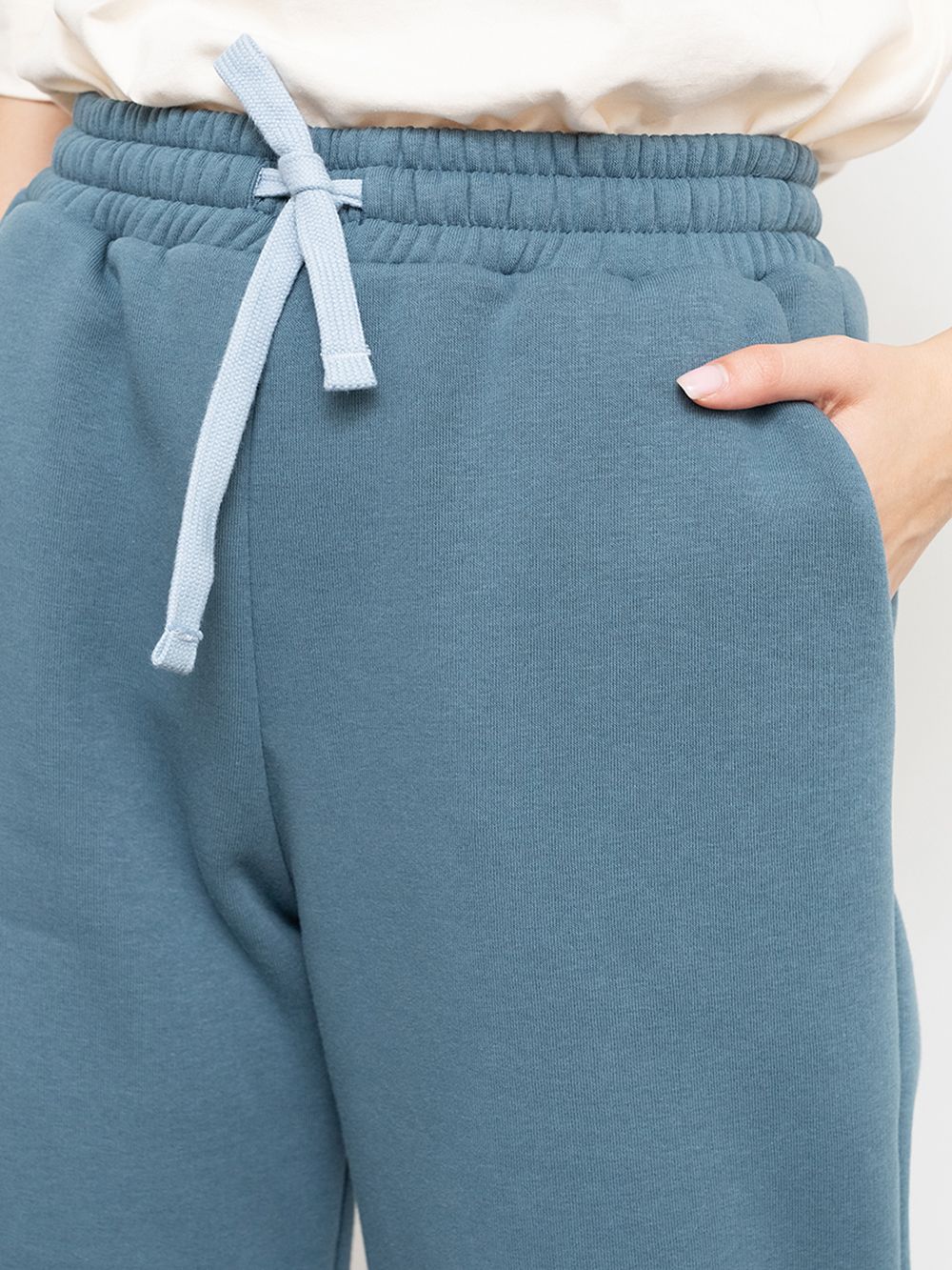Брюки из футера с теплым подчесом – мягкого, гигроскопичного и неприхотливого трикотажного полотна. Силуэт брюк прямой. Пояс с эластичной тесьмой внутри и проложенными по нему отделочными строчками. Регулировать ширину по талии позволяет шнурок-завязка. Передние карманы делают брюки еще более удобными. Рекомендуем!