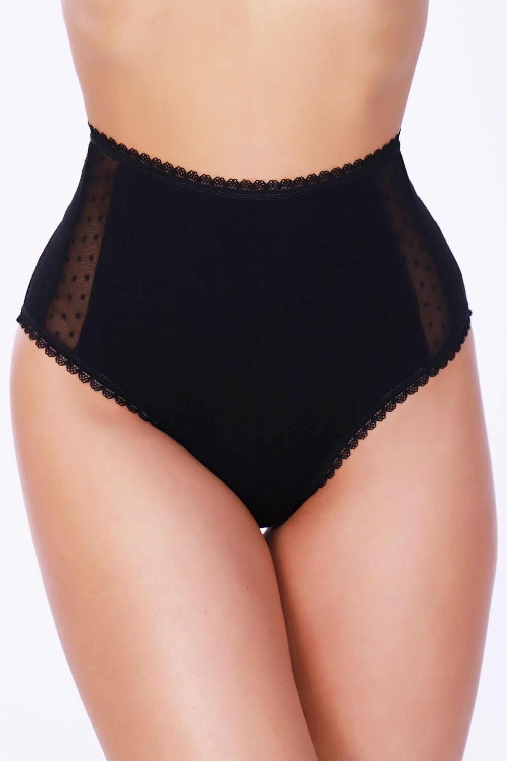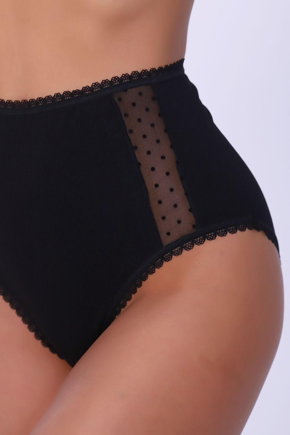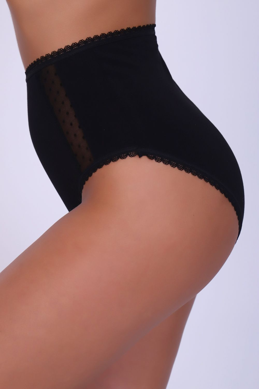 Трусики женские с завышенной талией. Ткань мягкая турецкого производства. Трусики имеют декоративную вставку по бокам из сеточки - горох. Резиночки мягкие, приятно облегает тело, не жмут. Производство Россия.