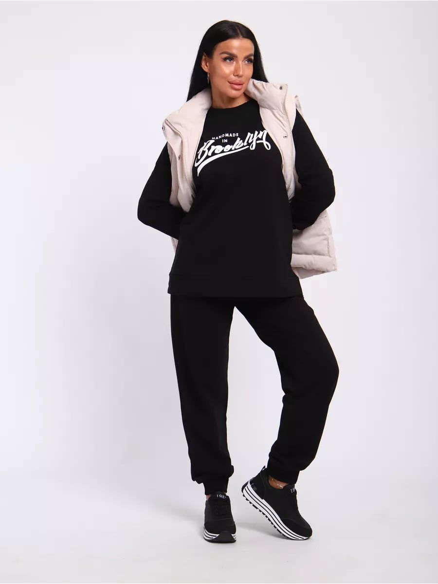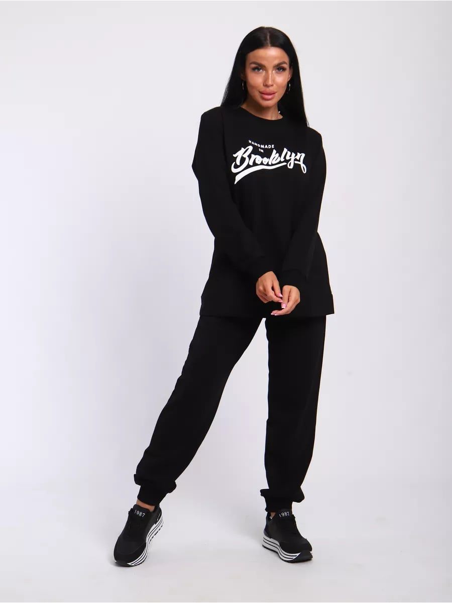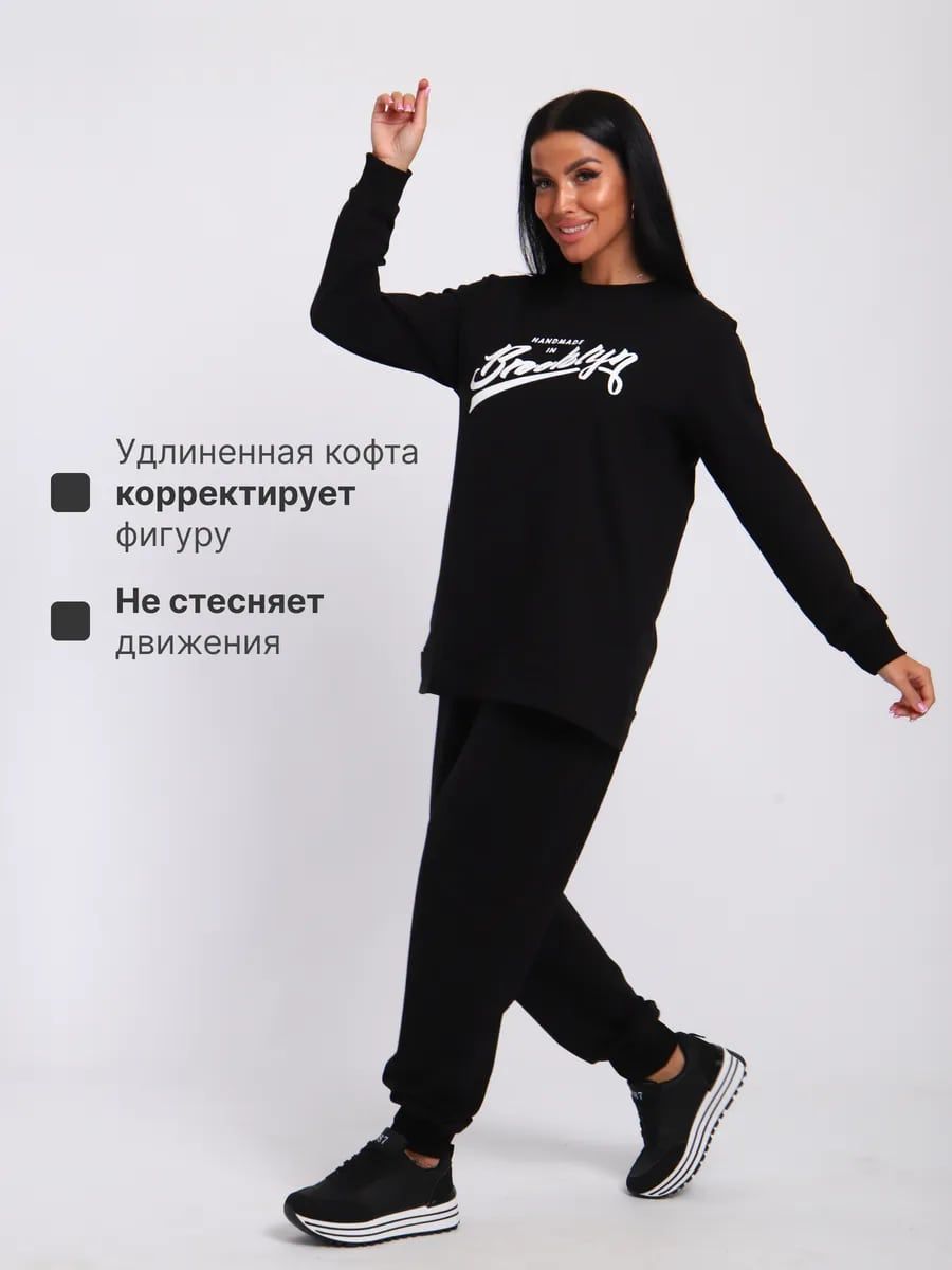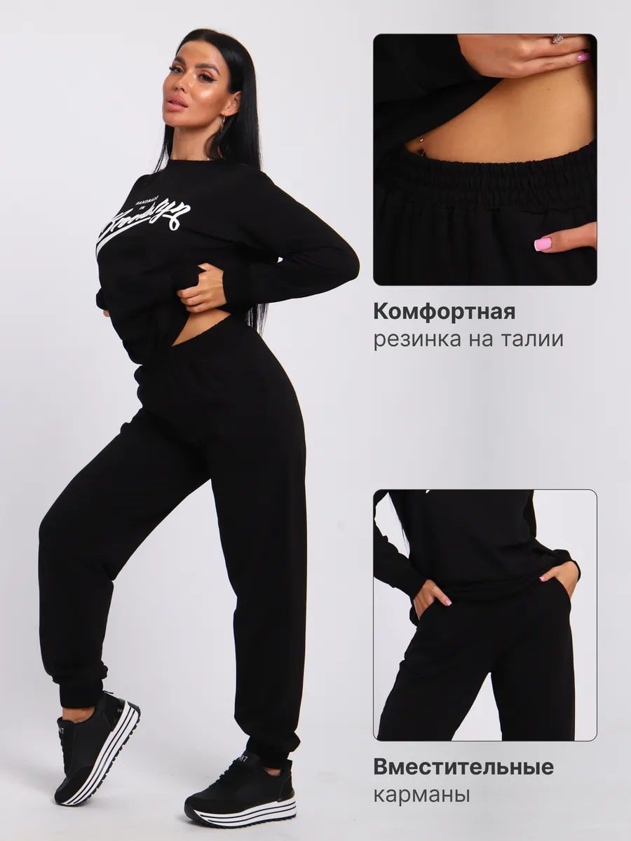 Идеальный осенний костюм для женщин, который сочетает в себе стиль, комфорт и универсальность. Этот спортивный брючный костюм станет незаменимой вещью в вашем гардеробе, будь то для дома, прогулок или тренировок. Изготовленный из футера 2-х нитки, он обеспечивает тепло и уют в любое время года, будь то весна или лето. Костюм состоит из свитшота и джоггеров, выполненных из высококачественного трикотажа, который включает хлопок, полиэстер и лайкру. Такое сочетание материалов делает костюм мягким, приятным на ощупь и долговечным. Хлопковая основа обеспечивает комфорт и воздухопроницаемость, полиэстер добавляет прочности, а лайкра обеспечивает эластичность и свободу движений. Этот костюм идеально подходит для беременных женщин, благодаря свободному крою и оверсайз дизайну. Штаны на резинке и свободный свитшот обеспечивают комфорт и удобство в любой ситуации. Костюм также отлично подходит для фитнеса, бега и тренировок, благодаря своей функциональности и стилю. Модный принт и надпись на свитшоте добавляют костюму молодежный и стильный вид, делая его идеальным выбором для активных и современных женщин. Этот костюм можно носить как дома, так и на улице, благодаря его универсальному дизайну и высокому качеству исполнения. Костюм доступен в различных цветах, что позволяет выбрать базовый вариант, который легко сочетается с другими вещами в вашем гардеробе. Он идеально подходит для летнего сезона, обеспечивая комфорт и стиль. Этот спортивный костюм станет отличным выбором для тех, кто ценит комфорт и стиль в повседневной жизни. Костюм двойка станет вашим надежным спутником в любой ситуации.