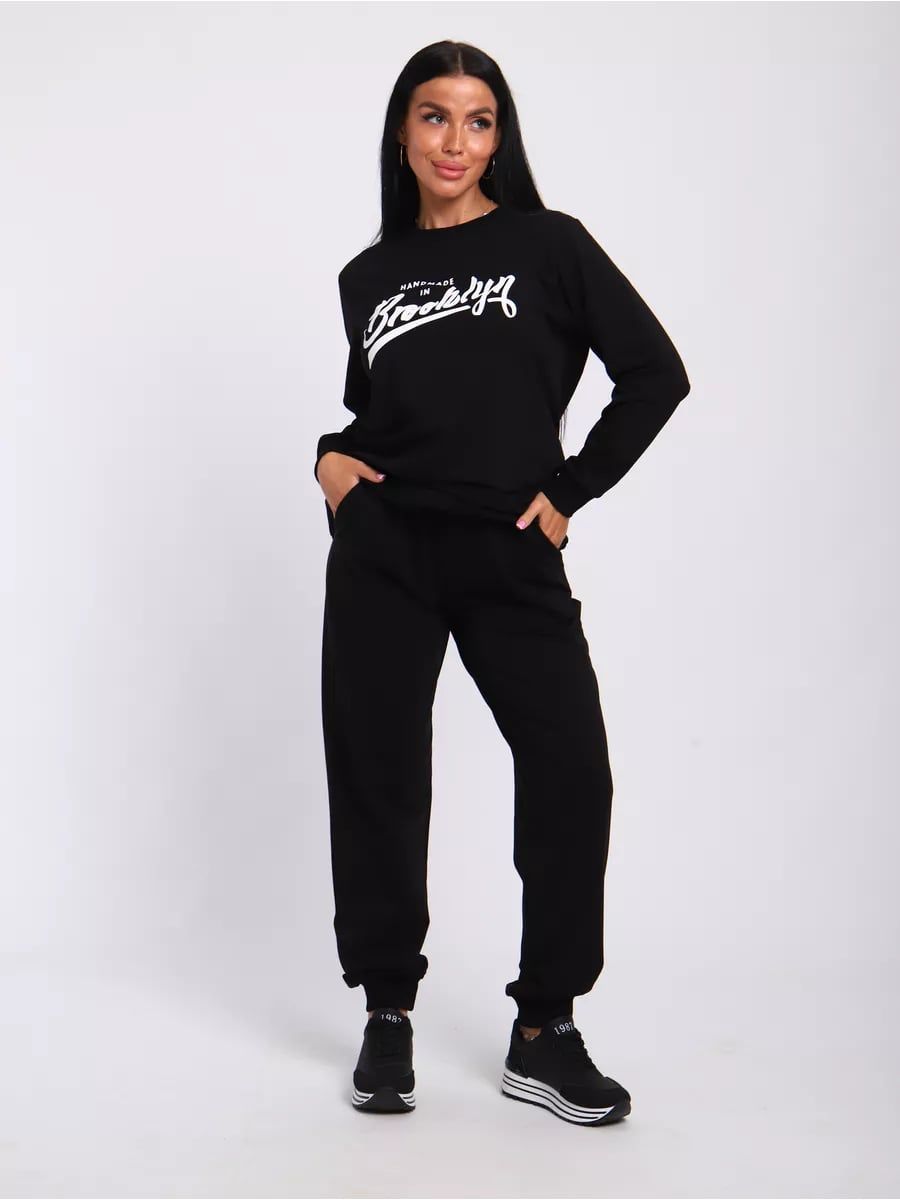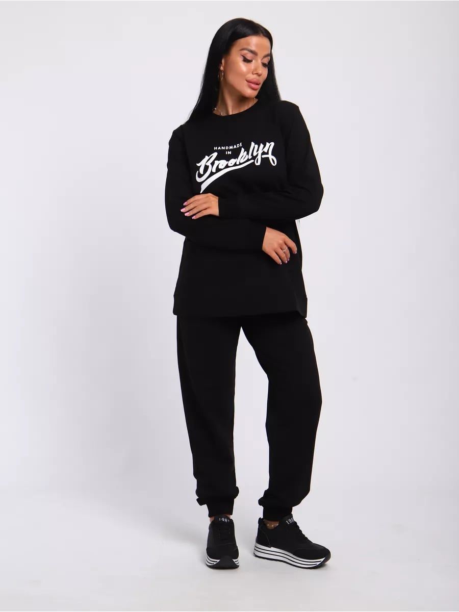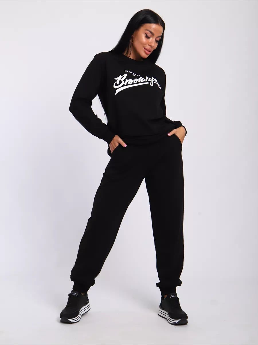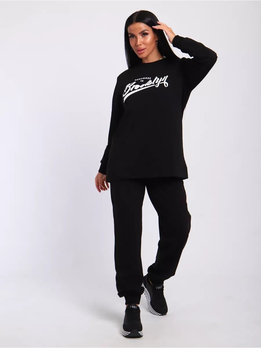 Идеальный осенний костюм для женщин, который сочетает в себе стиль, комфорт и универсальность. Этот спортивный брючный костюм станет незаменимой вещью в вашем гардеробе, будь то для дома, прогулок или тренировок. Изготовленный из футера 2-х нитки, он обеспечивает тепло и уют в любое время года, будь то весна или лето. Костюм состоит из свитшота и джоггеров, выполненных из высококачественного трикотажа, который включает хлопок, полиэстер и лайкру. Такое сочетание материалов делает костюм мягким, приятным на ощупь и долговечным. Хлопковая основа обеспечивает комфорт и воздухопроницаемость, полиэстер добавляет прочности, а лайкра обеспечивает эластичность и свободу движений. Этот костюм идеально подходит для беременных женщин, благодаря свободному крою и оверсайз дизайну. Штаны на резинке и свободный свитшот обеспечивают комфорт и удобство в любой ситуации. Костюм также отлично подходит для фитнеса, бега и тренировок, благодаря своей функциональности и стилю. Модный принт и надпись на свитшоте добавляют костюму молодежный и стильный вид, делая его идеальным выбором для активных и современных женщин. Этот костюм можно носить как дома, так и на улице, благодаря его универсальному дизайну и высокому качеству исполнения. Костюм доступен в различных цветах, что позволяет выбрать базовый вариант, который легко сочетается с другими вещами в вашем гардеробе. Он идеально подходит для летнего сезона, обеспечивая комфорт и стиль. Этот спортивный костюм станет отличным выбором для тех, кто ценит комфорт и стиль в повседневной жизни. Костюм двойка станет вашим надежным спутником в любой ситуации.