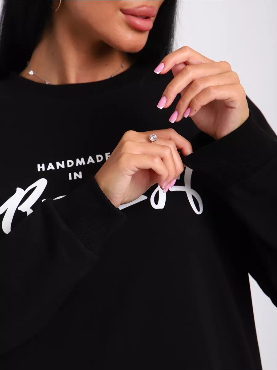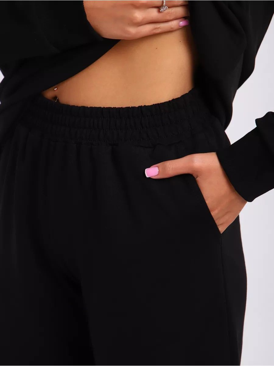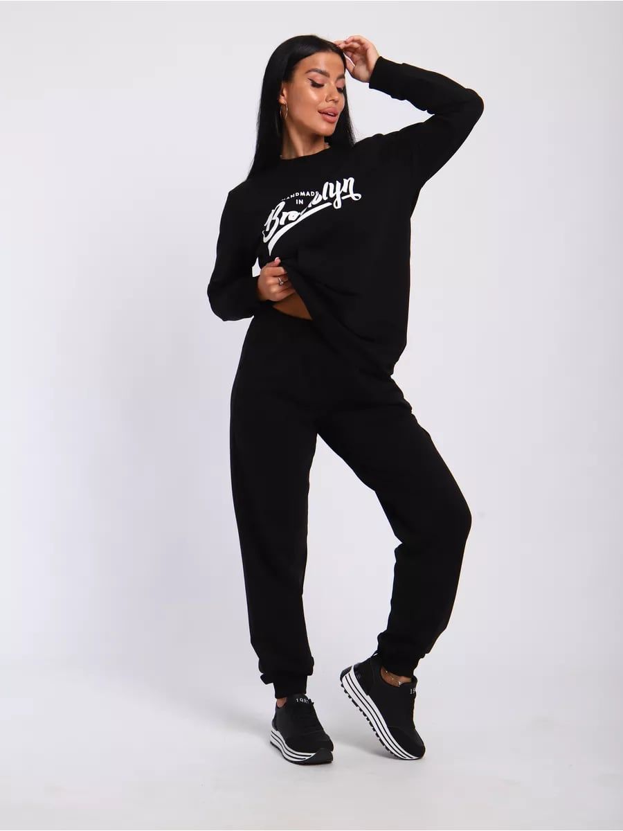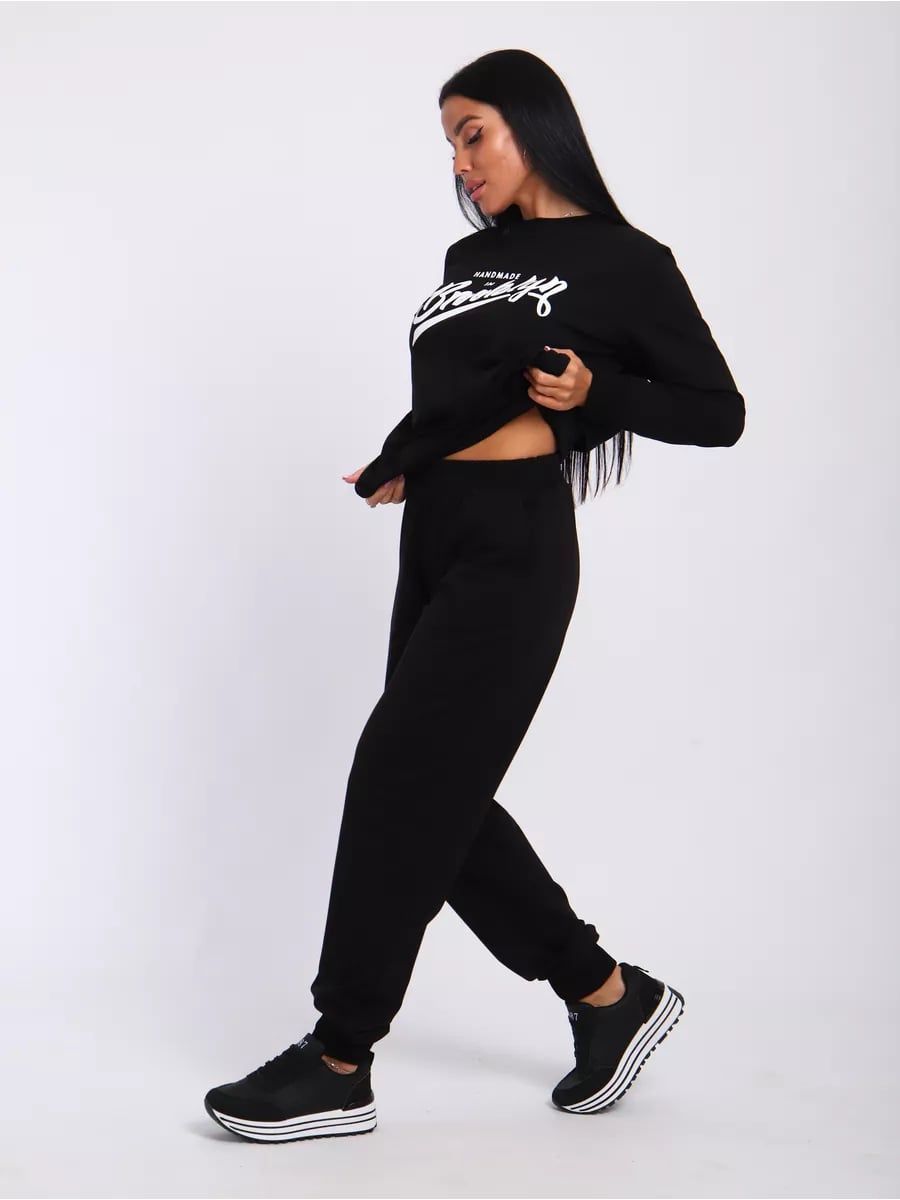 Идеальный осенний костюм для женщин, который сочетает в себе стиль, комфорт и универсальность. Этот спортивный брючный костюм станет незаменимой вещью в вашем гардеробе, будь то для дома, прогулок или тренировок. Изготовленный из футера 2-х нитки, он обеспечивает тепло и уют в любое время года, будь то весна или лето. Костюм состоит из свитшота и джоггеров, выполненных из высококачественного трикотажа, который включает хлопок, полиэстер и лайкру. Такое сочетание материалов делает костюм мягким, приятным на ощупь и долговечным. Хлопковая основа обеспечивает комфорт и воздухопроницаемость, полиэстер добавляет прочности, а лайкра обеспечивает эластичность и свободу движений. Этот костюм идеально подходит для беременных женщин, благодаря свободному крою и оверсайз дизайну. Штаны на резинке и свободный свитшот обеспечивают комфорт и удобство в любой ситуации. Костюм также отлично подходит для фитнеса, бега и тренировок, благодаря своей функциональности и стилю. Модный принт и надпись на свитшоте добавляют костюму молодежный и стильный вид, делая его идеальным выбором для активных и современных женщин. Этот костюм можно носить как дома, так и на улице, благодаря его универсальному дизайну и высокому качеству исполнения. Костюм доступен в различных цветах, что позволяет выбрать базовый вариант, который легко сочетается с другими вещами в вашем гардеробе. Он идеально подходит для летнего сезона, обеспечивая комфорт и стиль. Этот спортивный костюм станет отличным выбором для тех, кто ценит комфорт и стиль в повседневной жизни. Костюм двойка станет вашим надежным спутником в любой ситуации.