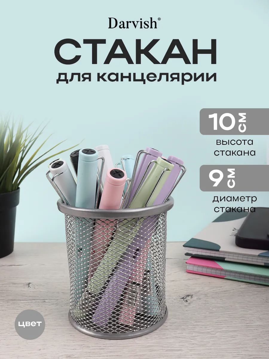 Подставка канцелярская металлическая. Подставка настольная создана для удобства хранения канцелярских или косметических принадлежностей. Она прекрасно украсит рабочий стол, косметический стол, как дома, так и на работе. Подставка-органайзер изготовлена из металлической сетки. Надежный вместительный корпус из прочного металла и цельнометаллическое дно. Качественная окраска. Безопасные закругленные края и качественная обработка. Прозрачная сетка для лучшего контроля за содержимым. Подставку-стакан можно использовать как стакан для карандашей, ручек, кистей, косметических принадлежностей. цвет и форма приходят случайным образом.