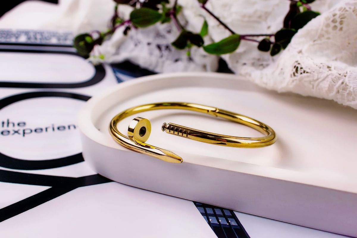 Браслет из защищенной нержавеющей стали, в стиле Картье Гвоздь + Подарок, в подарочном мешочке: Элегантный браслет "Гвоздь" в стиле Cartier – вневременная классика, которая подчеркнет ваш безупречный вкус! Представлен в двух роскошных оттенках: элегантное золото и изысканное серебро Изготовлен из качественной нержавеющей стали, браслет устойчив к потемнению и потере цвета, сохраняя свой первозданный вид на долгое время. Главной особенностью этого украшения является его прочность и устойчивость к воздействию воды и химических веществ, поэтому вы можете носить его без страха не только в повседневной жизни, но и во время контакта с водой и в процессе мытья посуды. Браслет металлический не темнеет, не окисляется и не оставляет темных пятен на вашей коже. Подходит для умывания, для моря. Застежки очень надежны.