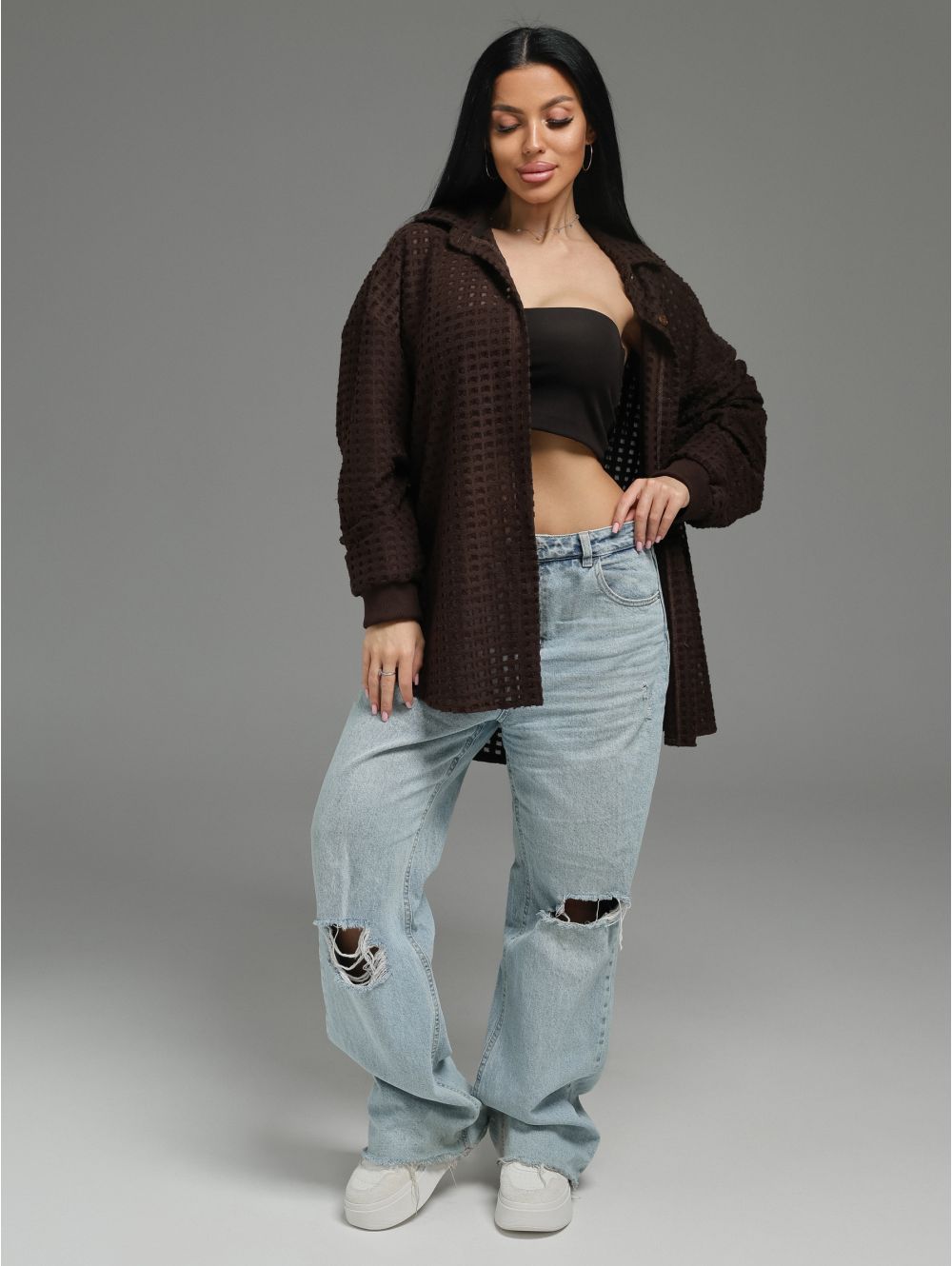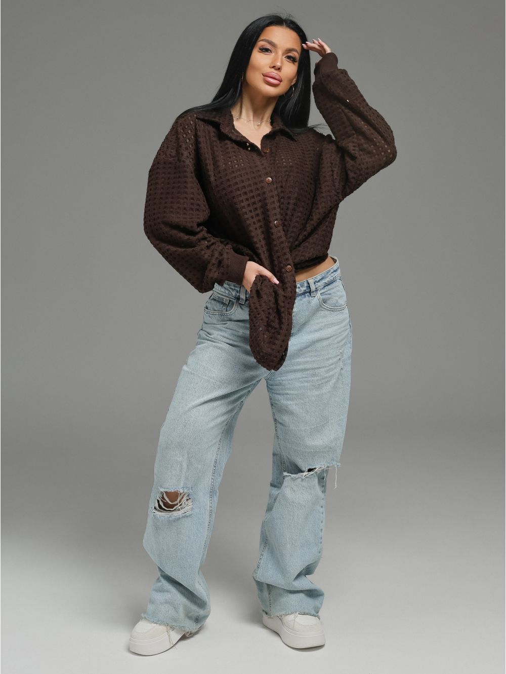 Характер: Уютная, фактурная рубашка, которая объединяет расслабленный крой, интересный дизайн
