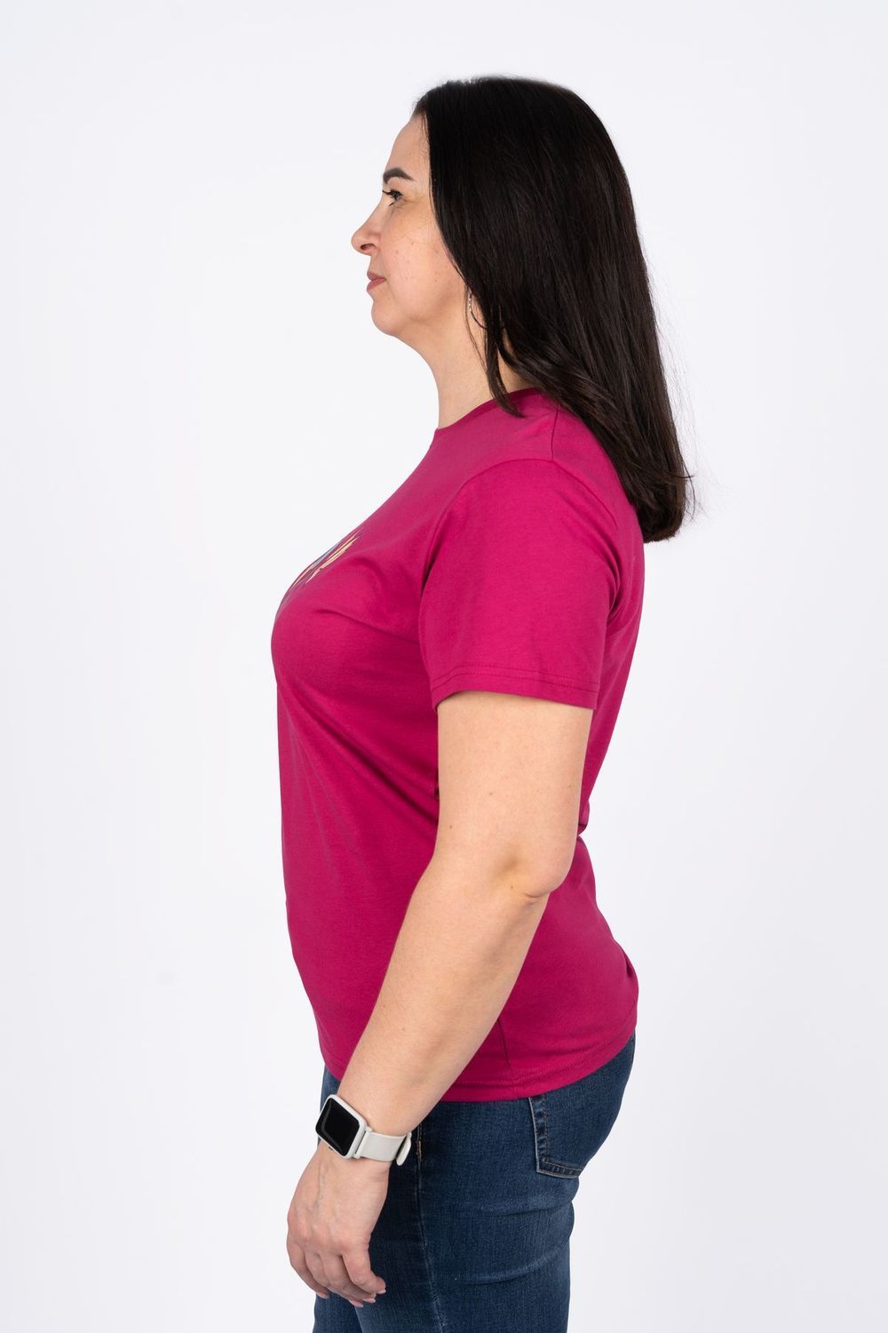 Эта женственная и очень нежная футболка обязательно напомнит вам о весне и хорошем настроении! Прочный крой обеспечит износостойкость, а дышащий, не задерживающий влагу хлопок гарантирует приятные ощущения во время носки даже в жаркую погоду. Прямой крой визуально подчеркнет фигуру, сделав ее более стройной. Горловина круглая, обработана воротником из кулирки. Низ изделия и рукавов обработан швом вподгибку. На полочке принт.