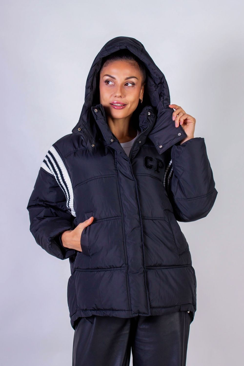 Стильная куртка с капюшоном Оверсайз Евро-зима, демисезон арт.2309 - черный