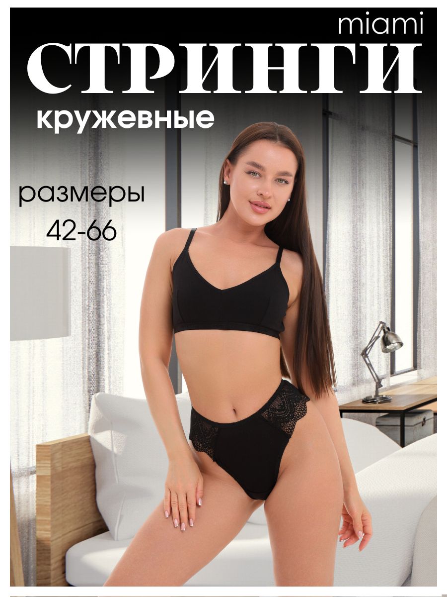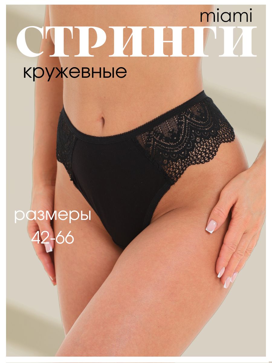 Представляем вашему вниманию чёрные кружевные стринги от бренда Miami, которые не оставят равнодушными представительниц прекрасного пола. Наши сексуальные стринги отличаются особым качеством, благодаря которому трусики будут долго служить вам и не потеряют свой цвет и форму. Трусики для полных женщин изготовлены из ткани высокого качества, содержащей в составе хлопок, что делает его идеальным для повседневного использования. Молодежные трусы-стринги из мягкого кружева хорошо тянутся, приятные к телу. Наше женское бельё из дышащего материала не сдавливают кожу и не оставляют следов. Они удобны для носки на каждый день, для дома, для прогулок, вечеринок и свадьбы. Наш размерный ряд может похвастаться как маленькими, так и большими размерами. Наше нижнее бельё подчеркнёт Вашу женственность, сделают Вас более соблазнительной и помогут осуществить любую эротическую фантазию.