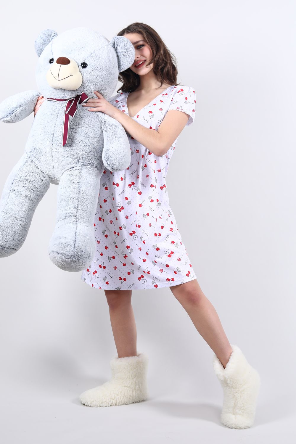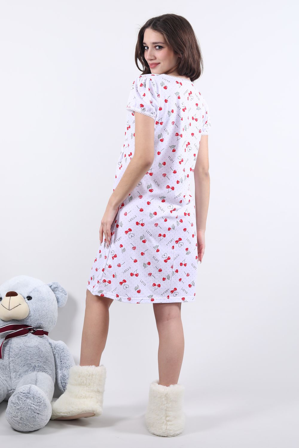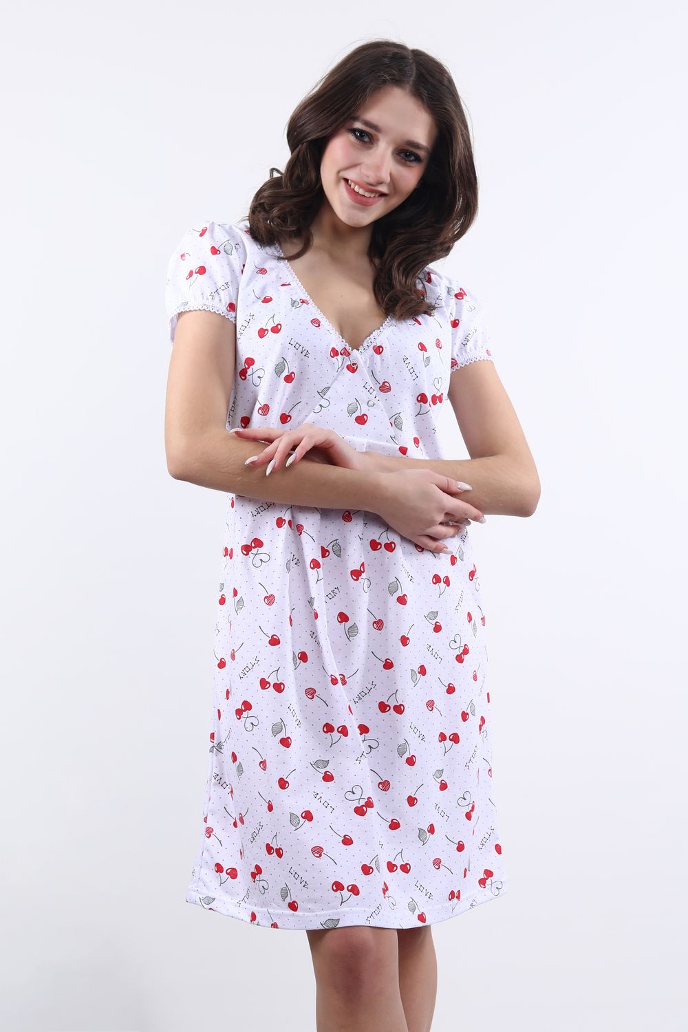 Женская сорочка с V-образным вырезом на кнопках. Отличный вариант для сна и отдыха, идеально подходит для кормления малыша. Данная модель выполнена из приятного к телу материала, трикотажного полотна кулирка (100% хлопок). Пройма и горловина обработана кружевной резинкой.