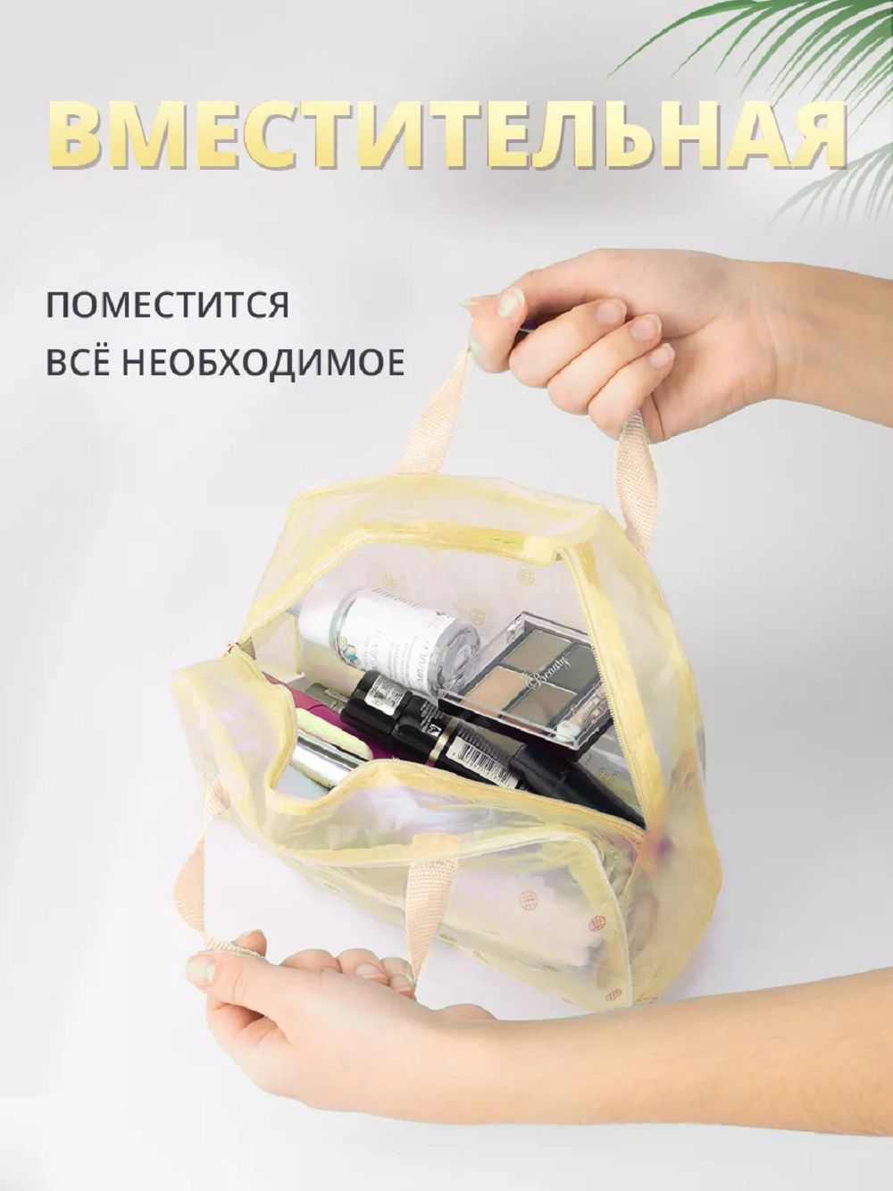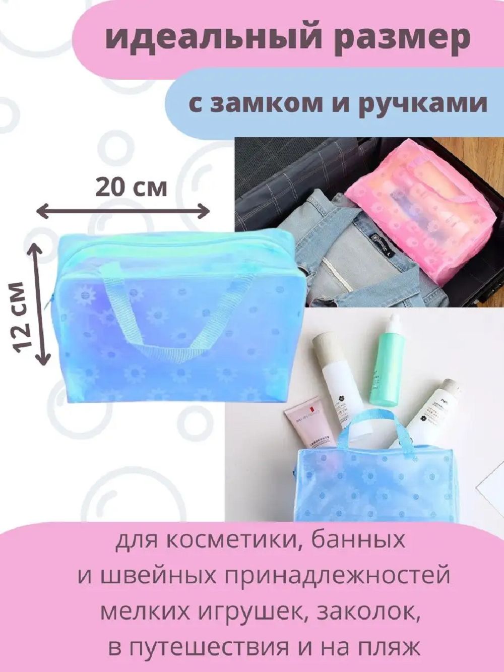 Косметичка прозрачная станет вашим любимым аксессуаром! Бескаркасная форма позволяет подстраивать размер этого органайзера для косметики под любую сумочку. Выполнена из плотного качественного материала ПВХ, который защищает содержимое от влаги и пыли. За счет прозрачности вы без труда сможете найти нужную вещь! Органайзер для мужчин и женщин удобно взять с собой в ванную, баню или поездку. Эту удобную косметичку можно использовать как мини бьюти бокс для кистей и украшений, пенал, кейс для хранения вещей. Размер: 21 х 9 х 13 см. Цвета могут отличаться от фото.