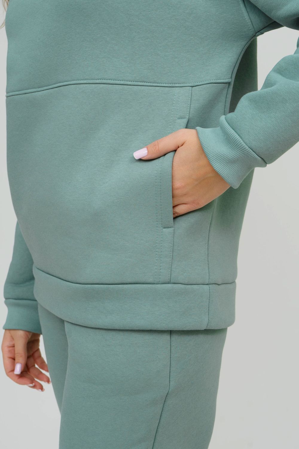 Модная женская толстовка в стиле oversize выполнена из футера 3-х нитки с начёсом - это самый плотный и тёплый вид трикотажа. Данный вид футера имеет множество достоинств: натуральный состав, теплорегуляция, гипоаллергенность, прочность и формоустойчивость (при правильном уходе и стирке 30-40 °С). На полочке толстовки имеется современный и удобный накладной карман. Манжеты выполнены из качественного кашкорсе. Линия плеча спущена. Длина рукава указана от точки основания шеи. При носке плотный начёс костюма приминается и может оставлять следы на одежде, образовывая катышки, это проходит после 1-2 стирки.