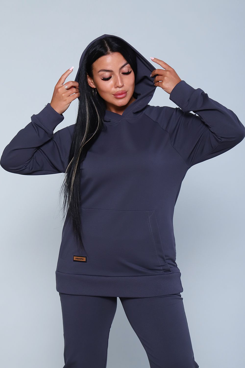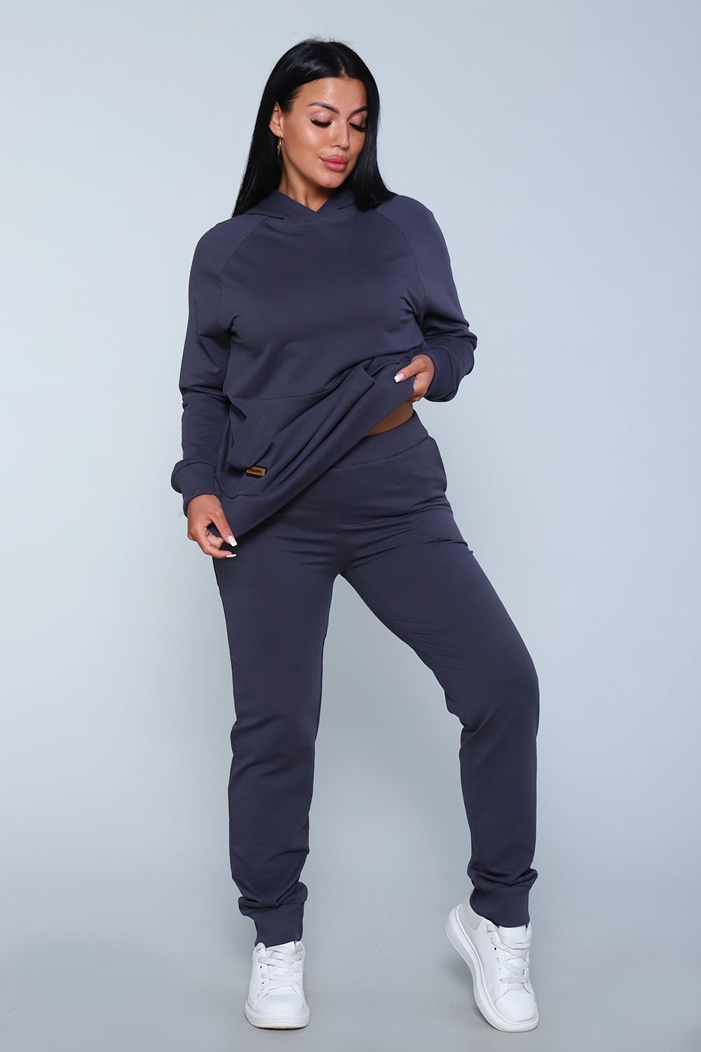 Костюм женский из мягкого футера с лайкрой 2-х нитка. Свободная толстовка с капюшоном, карман-кенгуру с шевроном, длинный рукав и низ толстовки обработан широким манжетом из кашкорсе. Брюки с карманами, удобная посадка, пояс и манжеты из кашкорсе. Тёплый, в спортивном стиле костюм отличный вариант для занятия спортом и просто прогулок, необходимая вещь в женском гардеробе.