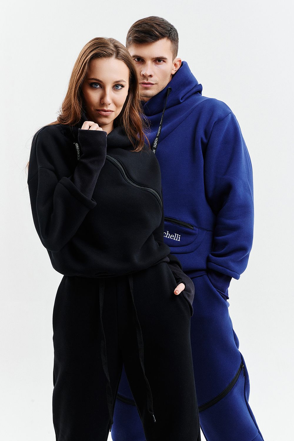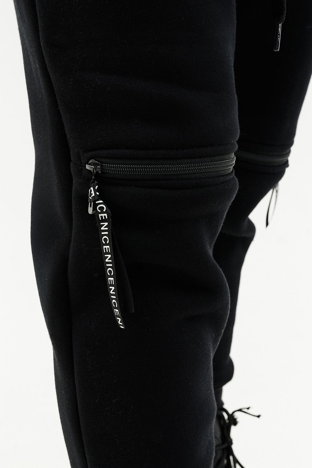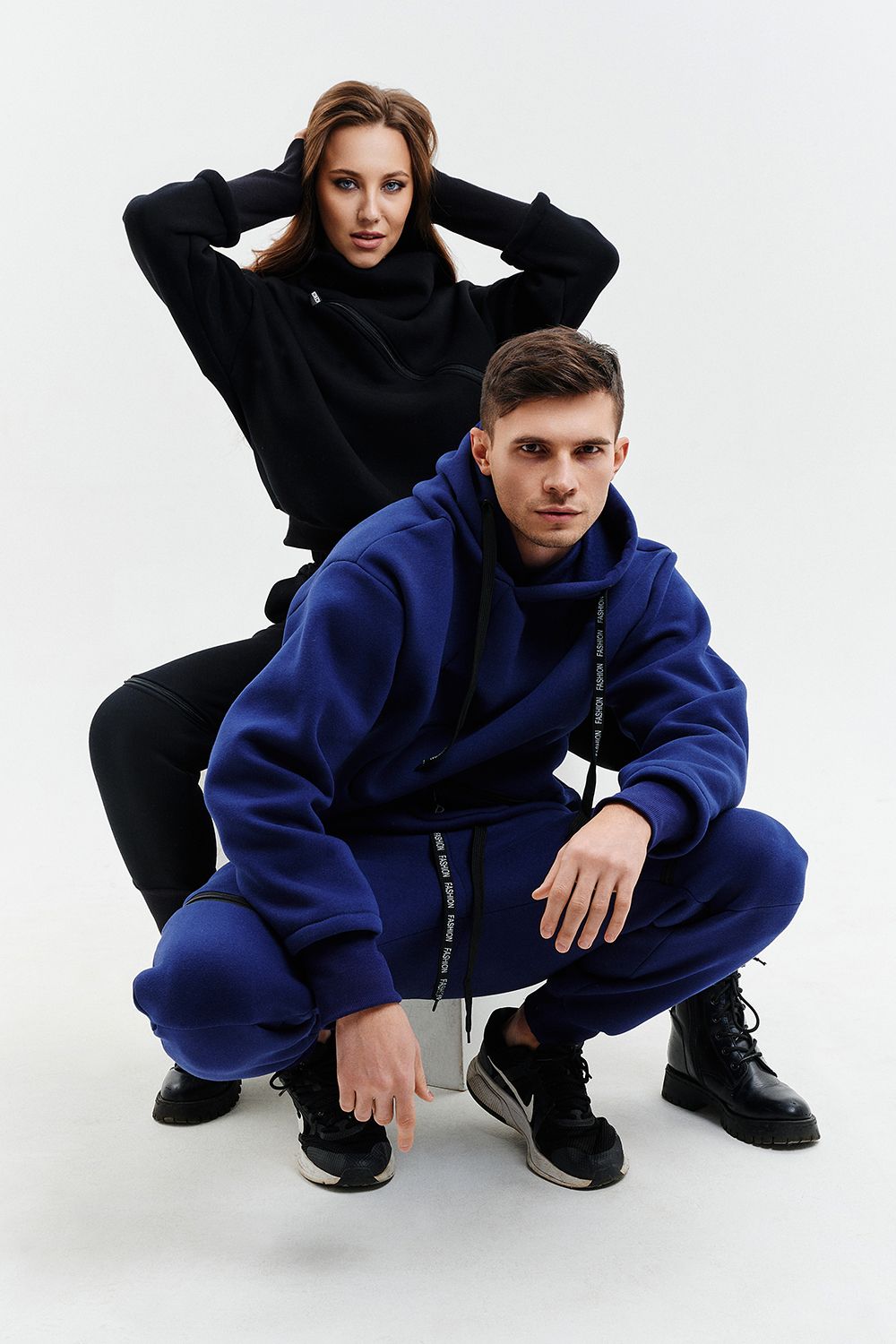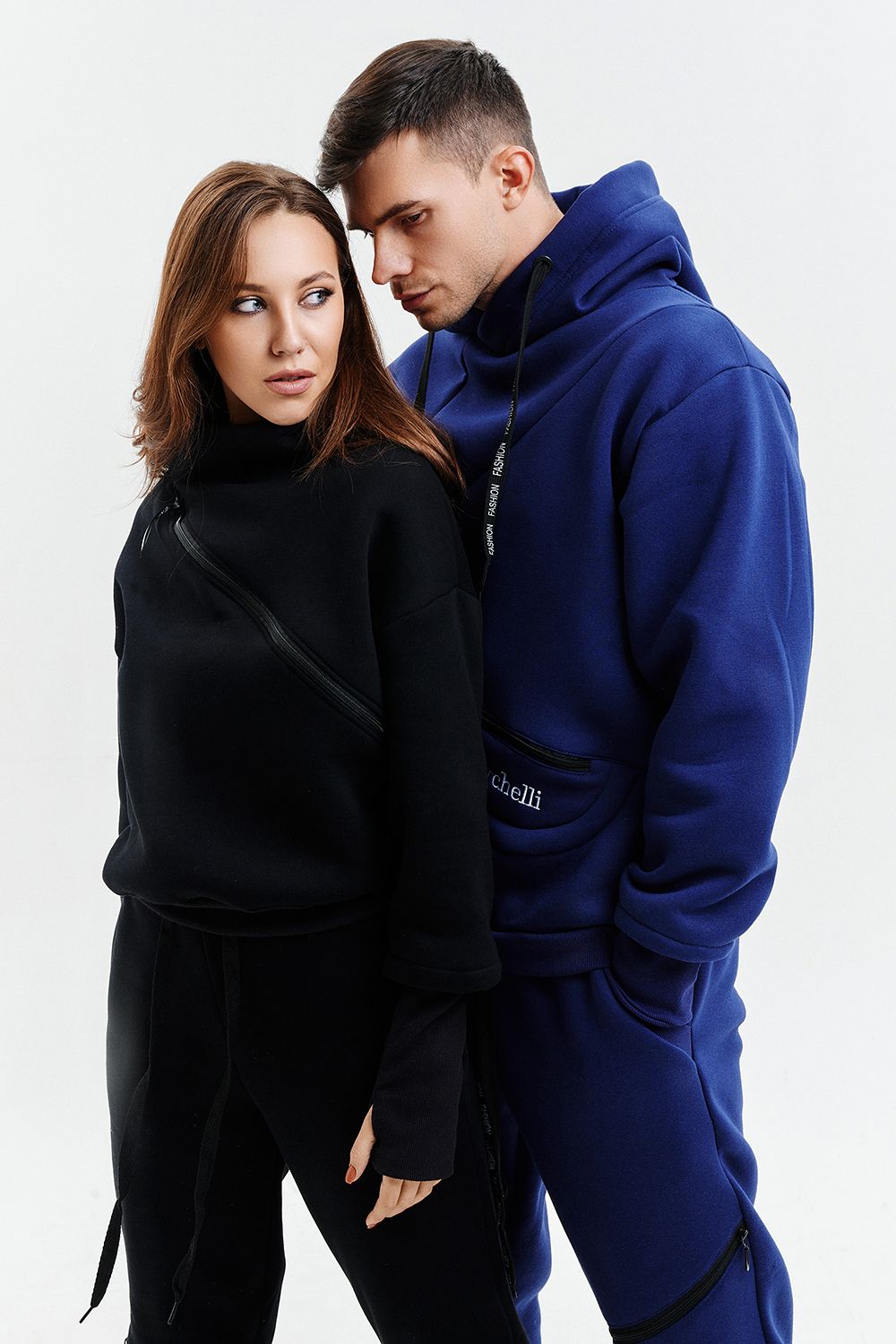 Удобный и стильный женский спортивный костюм. Состоит из свитшота и брюк-" джогеров". Толстовка и брюки оформлены функциональными, декоративными молниями. Толстовка с удобным воротником-стойкой, низ рукавов обработан высокой манжетой-перчаткойиз кашкорсе. Джогеры с высокой посадкой и широкой эластичной резинкой на поясе со шнурком. Низки брюк обработаны манжетами, что очень удобно при носке и отлично смотрятся с грубыми ботинками в стиле "челси". Спортивный костюм подходит как для зимних видов спорта, лыж, коньков, так и в холодную погоду осенью, весной.