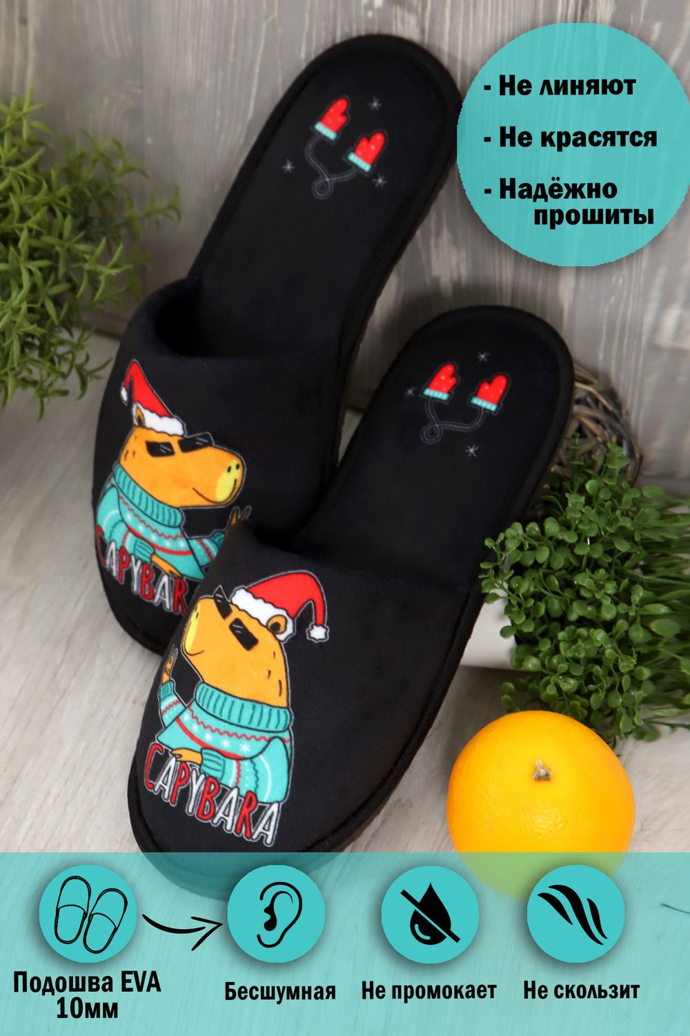 Мягкие домашние тапочки с закрытым носом и открытой пяткой – это идеальный аксессуар для создания уютной атмосферы в вашем доме! Верх и стелька изготовлены из теплых и приятных на ощупь материалов. Подошва изготовленная из высококачественного ПВХ, который еще называют EVA. Обеспечивает отличное сцепление с полом и защиту от скольжения. Это уникальный материал и при всей своей комфортабельности, долго способен выдерживать большие нагрузки Удобные и стильные, эти тапочки с рисунком станут незаменимым аксессуаром вашего домашнего гардероба как зимой, так и в летние дни! Все наши тапки прошиваются для большей износостойкости армированной нитью, а сублимационная печать позволяет наносить краску на волокна ткани, из-за чего цвета получаются насыщенными и сохраняют яркость даже после нескольких стирок. Дизайнерские принты придадут уникальности и поднимут настроение вам и вашим гостям!