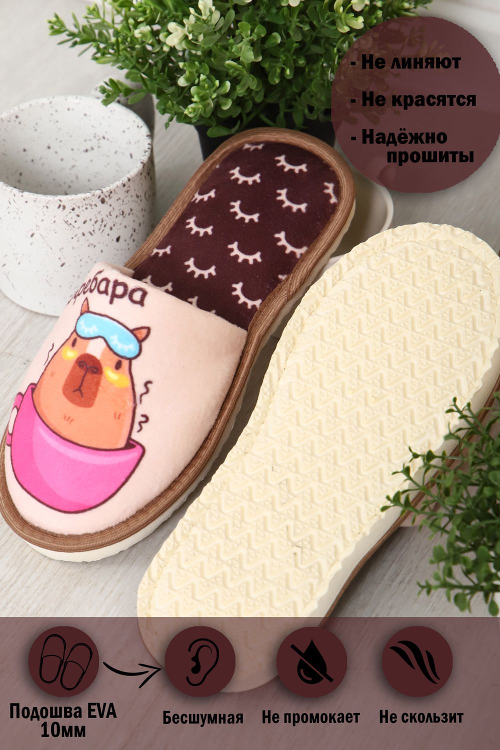 Мягкие домашние тапочки с закрытым носом и открытой пяткой – это идеальный аксессуар для создания уютной атмосферы в вашем доме! Верх и стелька изготовлены из теплых и приятных на ощупь материалов. Подошва изготовленная из высококачественного ПВХ, который еще называют EVA. Обеспечивает отличное сцепление с полом и защиту от скольжения. Это уникальный материал и при всей своей комфортабельности, долго способен выдерживать большие нагрузки Удобные и стильные, эти тапочки с рисунком станут незаменимым аксессуаром вашего домашнего гардероба как зимой, так и в летние дни! Все наши тапки прошиваются для большей износостойкости армированной нитью, а сублимационная печать позволяет наносить краску на волокна ткани, из-за чего цвета получаются насыщенными и сохраняют яркость даже после нескольких стирок. Дизайнерские принты придадут уникальности и поднимут настроение вам и вашим гостям!