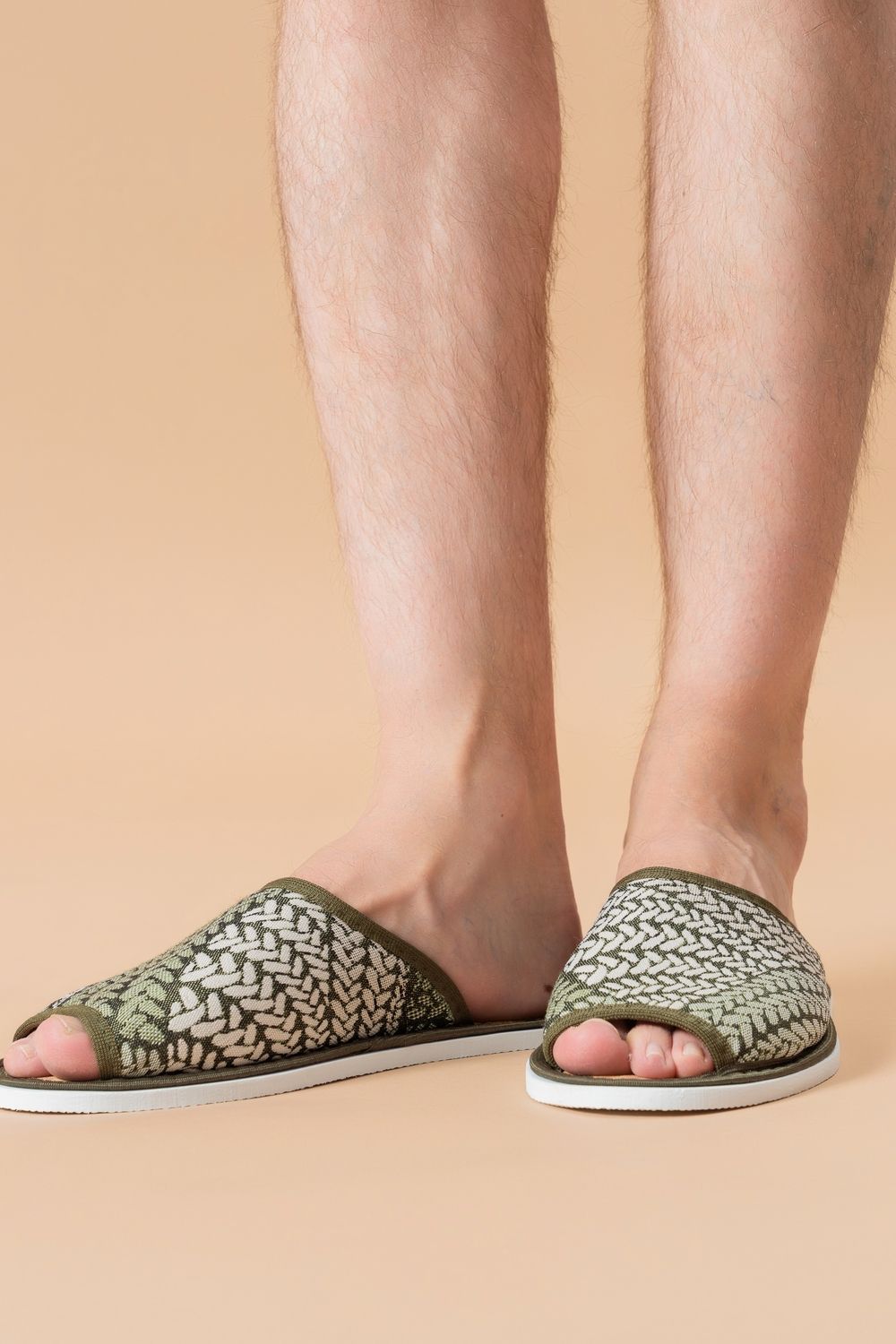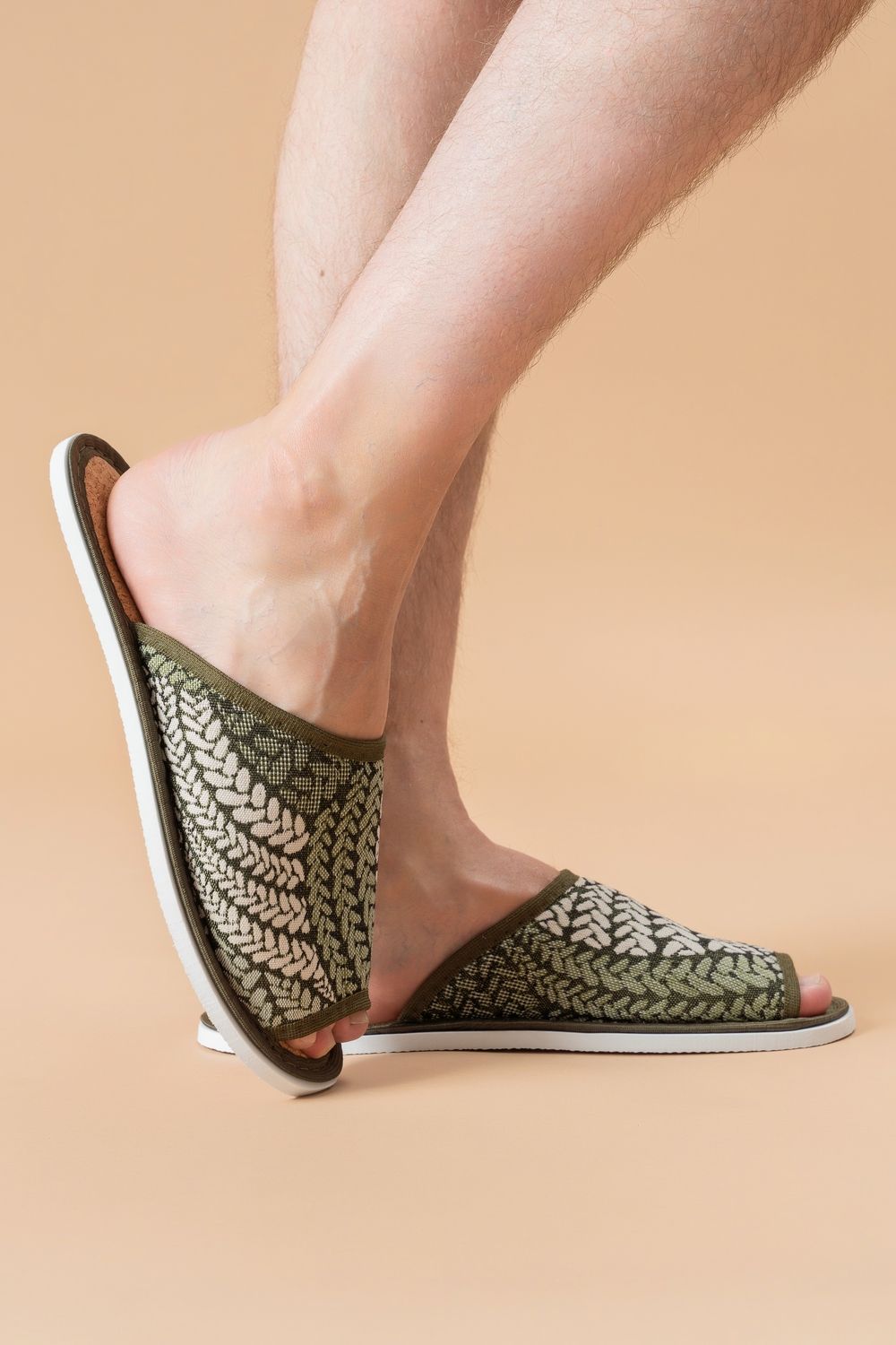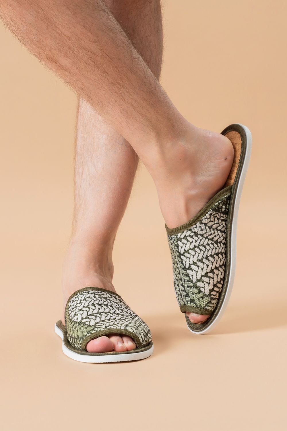 Тапки мужские с пробковой стелькой МШО(пр) - косички/зеленый