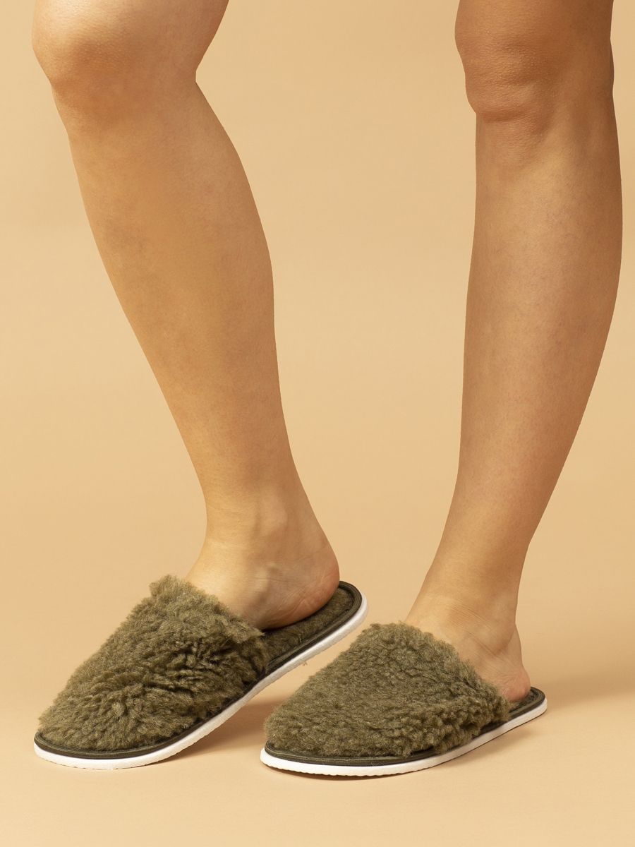 Тапочки домашние меховые С-6НШ/Тверь(ж)-МР - хаки
