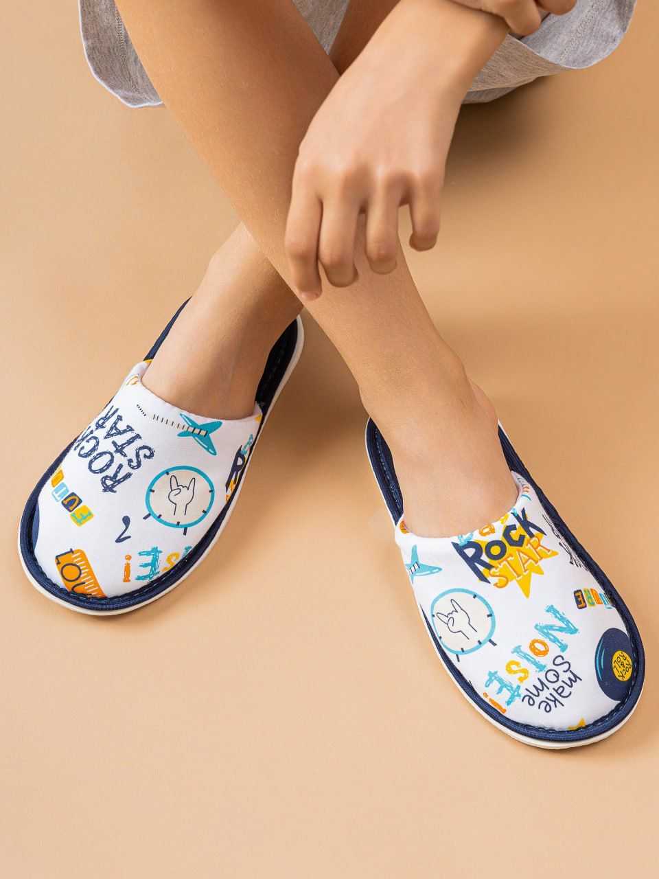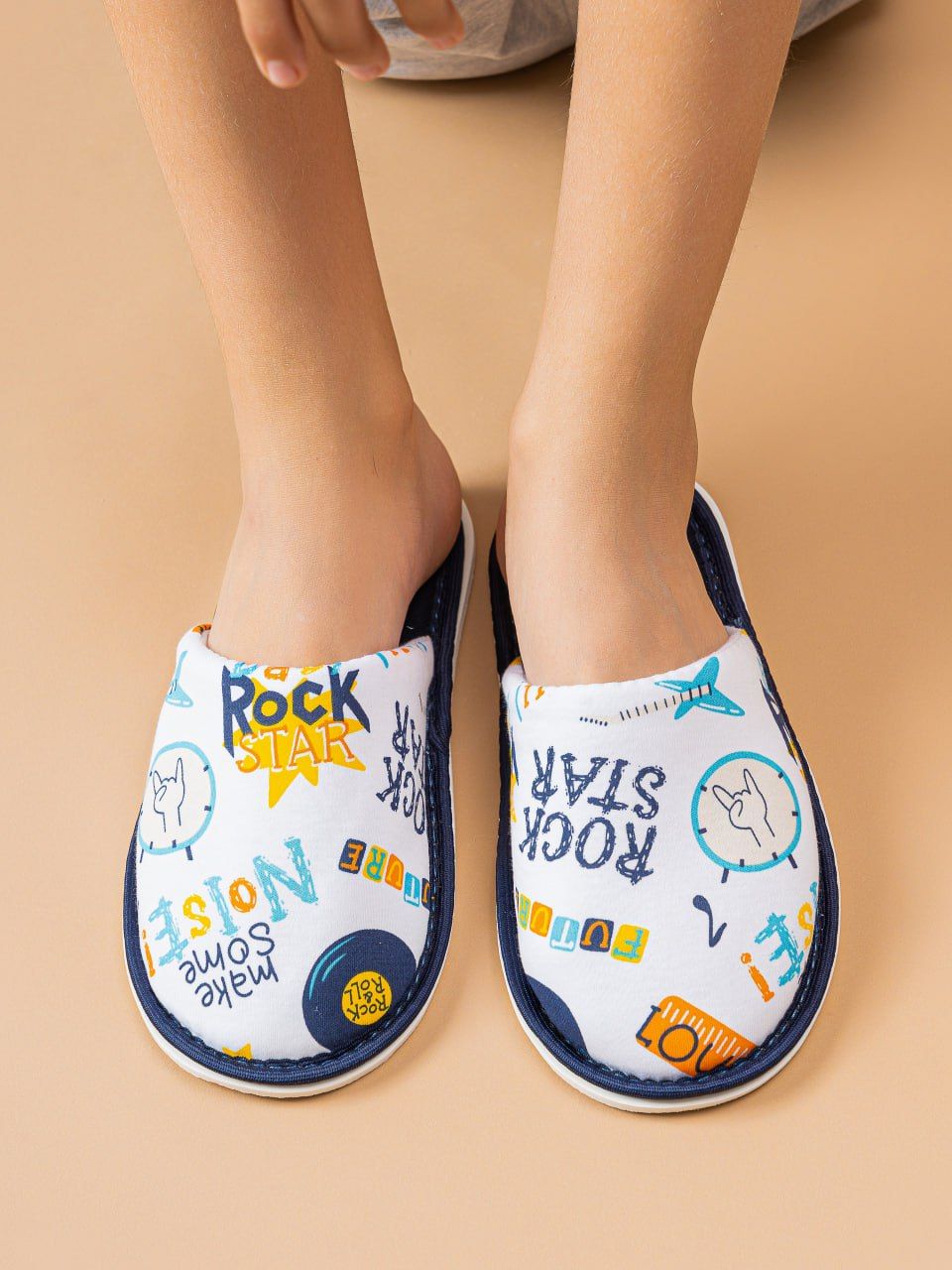Стильные комнатные тапочки для мальчиков с закрытым мыском и открытой пяткой - это идеальная классическая модель для вашего маленького мужчины. Выполненные из гипоаллергенного 100%-го хлопка качества пенье, эти тапочки обеспечат комфорт и удобство даже самой чувствительной коже вашего малыша.
