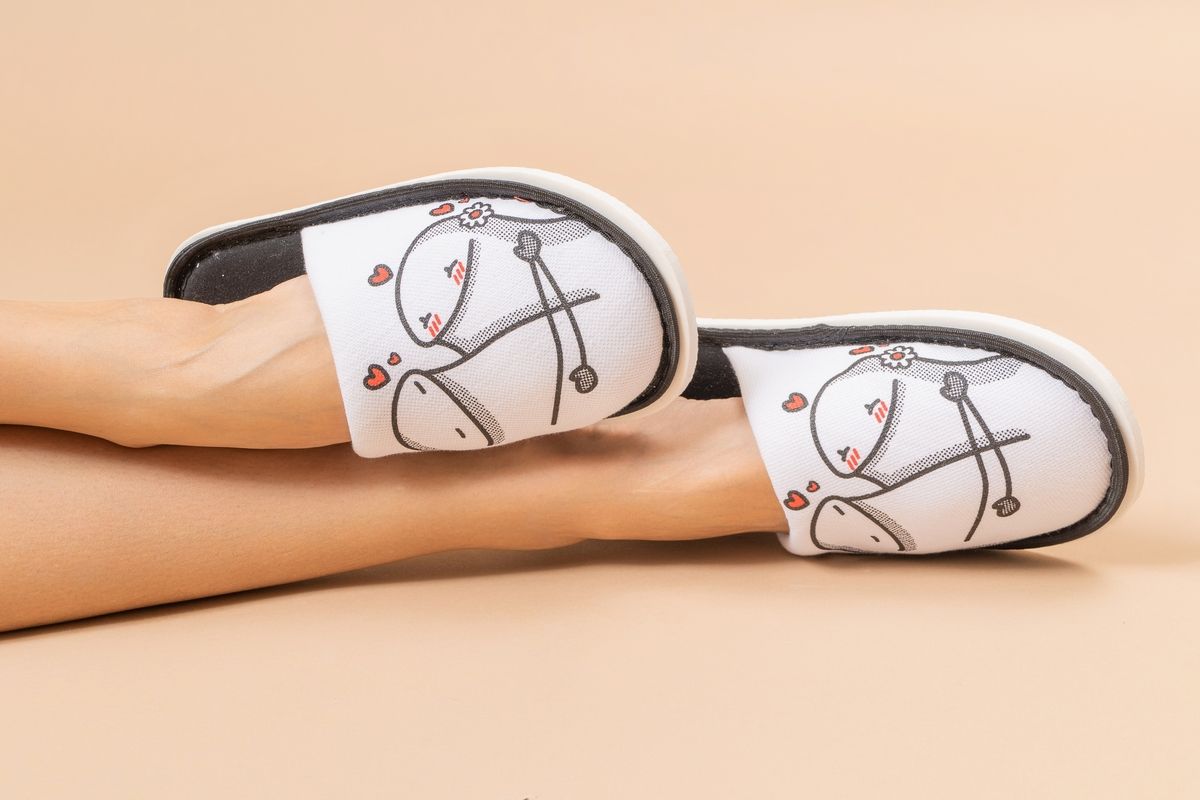 Отличные легкие тапочки с забавными принтами. Станут прекрасным дополнением для халатов, пижам и любой другой домашней одежды.