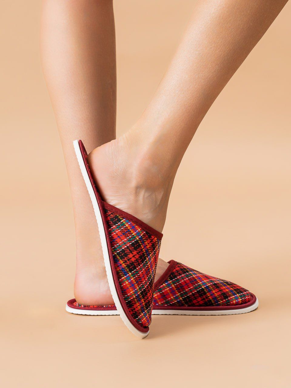 Тапочки домашние С-6ЖТП-МР - алый/клетка
