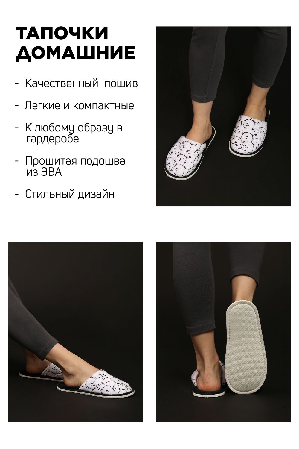 Отличные легкие тапочки для тех, кто предпочитает классику. Станут прекрасным дополнением для халатов, пижам и любой другой домашней одежды.