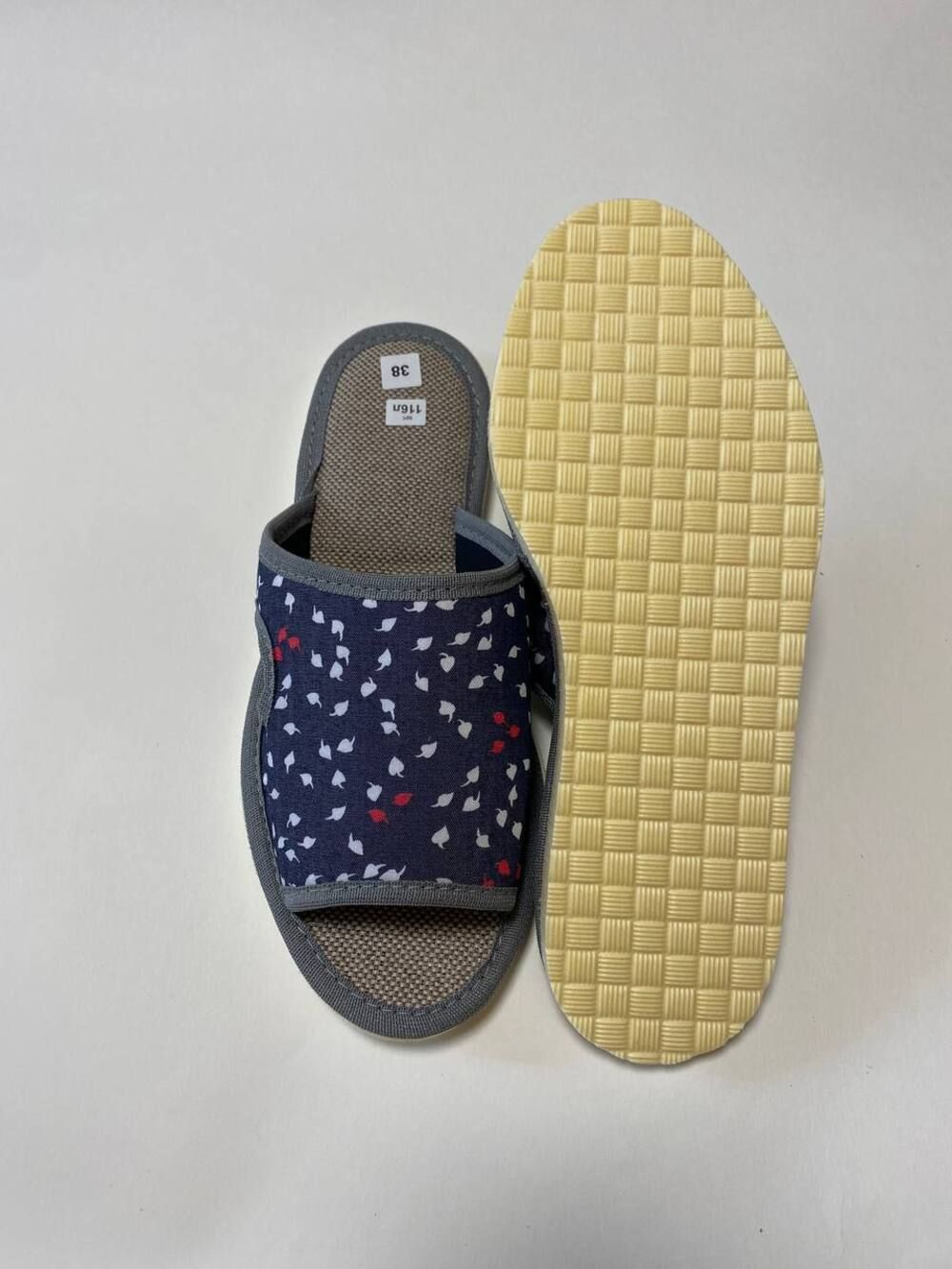 Легкие комнатные тапочки женские от бренда "Лепилов" прекрасно подойдут для ежедневного ношения дома и на даче в любое время года. Их можно предложить своим гостям, или взять с собой на отдых, в дорогу. А как приятно после тяжелого рабочего дня переобуться в тапочки с комфортной посадкой по ноге! Тапочки с открытым мыском не натирают ноги. Верхняя часть домашних тапок выполнена из качественного текстиля, который легко пропускает воздух. В таких тапочках нога не потеет и не скользит. Стелька из рогожки обладает прочностью и долговечностью! Они спасают от холодного и мокрого пола и подходят на среднюю полноту стопы. Их можно носить с носком и на босу ногу. Подошва изготовлена из ЭВА, это легкий, упругий, эластичный и износостойкий материал. Все швы качественно обработаны производителем. Классическая модель подойдет для носки в любое время года: в осенний, весенний и летний, в зимний период, будет удобна в качестве домашних комнатных, дачных или рабочих. Широкий размерный ряд позволяет найти свою пару удобной обуви каждой женщине. Наслаждайтесь каждым моментом вместе с нами!